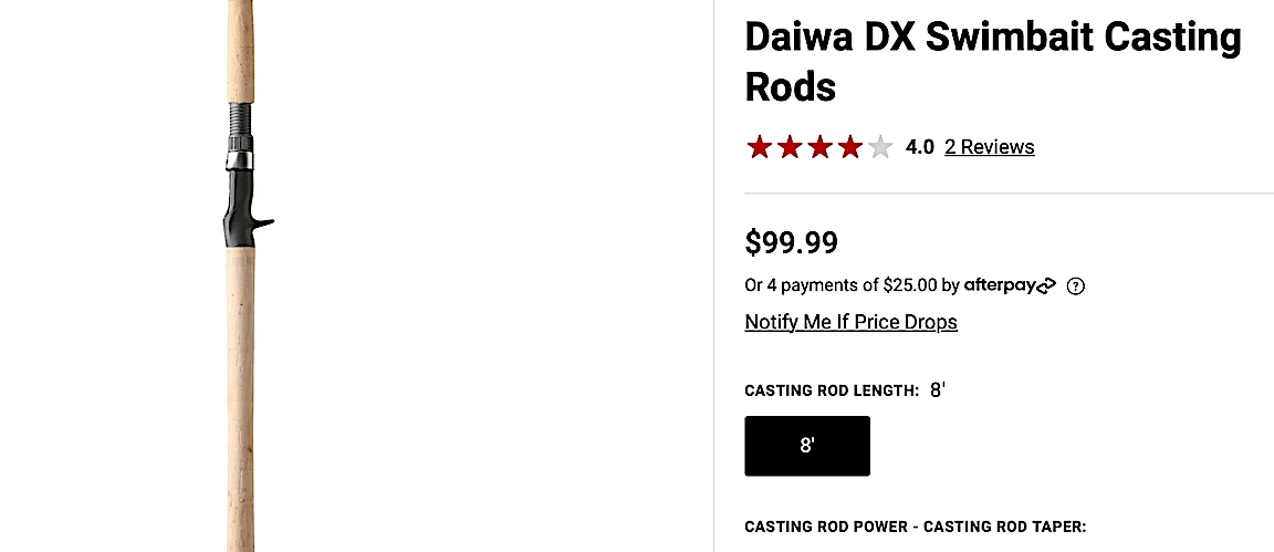 DAIWA DXSB 8' (M-H)SWIMBAIT ROD. ROD HAVE BEEN SOLD