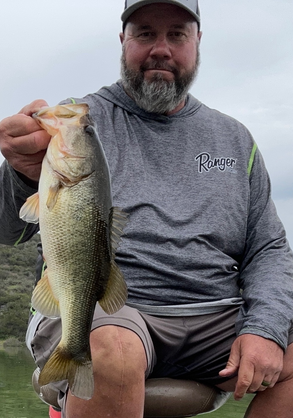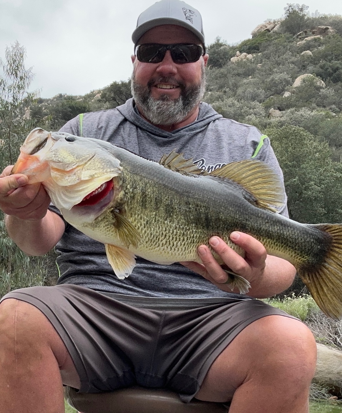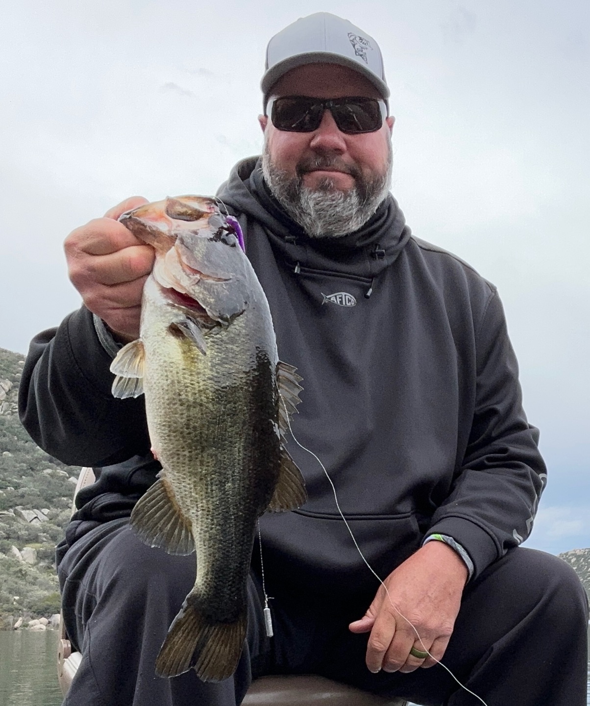 Decided to head back to my starting area and work deeper but I saw no one was on the spot I had wanted to start on so I figured what the hell? Headed on back to that spot and managed two more fish to give me about a 9lb limit. Honestly better than I expected. The fish came out of a small channel that is about 5-7ft deeper than the rest of the immediate area. I kept working my dropshot along that channel when on one cast I went to start shaking my bait and all I felt was slack. I kept very slowly taking up slack thinking it was a fish but before I got the slack out, my line was almost directly under my boat. Set the hook and the fish instantly took drag and got into a bush but, surprisingly, came right back out. I knew it was a better fish but with the algae bloom I couldn’t see it……until it came up and jumped about 5ft from the boat. After another 30 or so very tense seconds I put the net under a beautiful 7.62. Biggest I have ever gotten at San V and the biggest in several years overall. I was at least the 4th boat to fish that spot so I guess Lady Luck was smiling on me today. Believe it or not it bit a 3” chocolate Fluttercraft. Who said big fish won’t eat little baits?