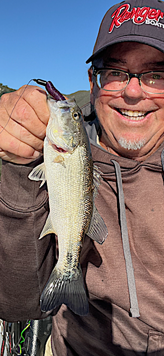 a senko and missed 3 other bites, but happy to land some bass even though most of them were very small on a lake I had not