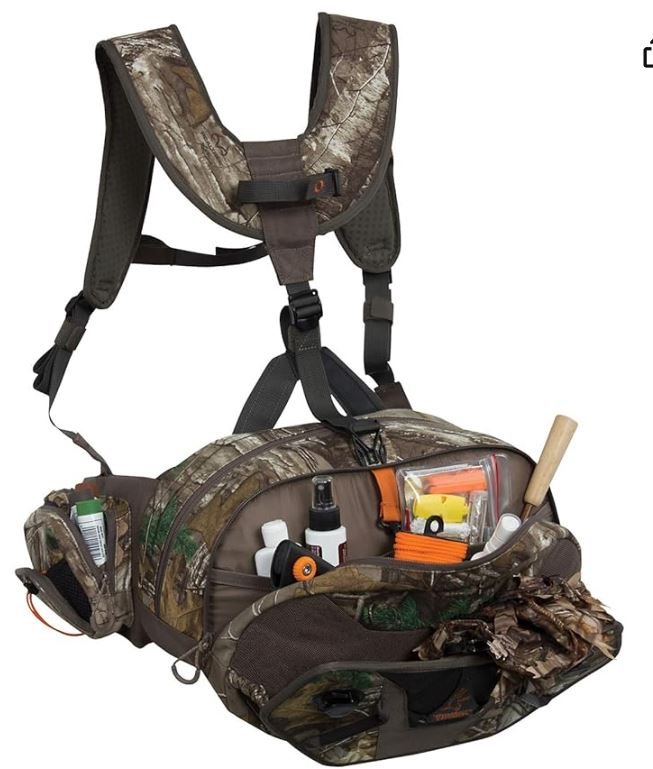 Does your overloaded lumbar pack slide down? Do your fishing trips involve more hiking than fishing, and a "day pack" just ain't cutting it? Do you have to buy stuff that you don't even need, just because it's CAMO, baby? Do you bowhunt and want a pack that'll carry your bow? Looky here: