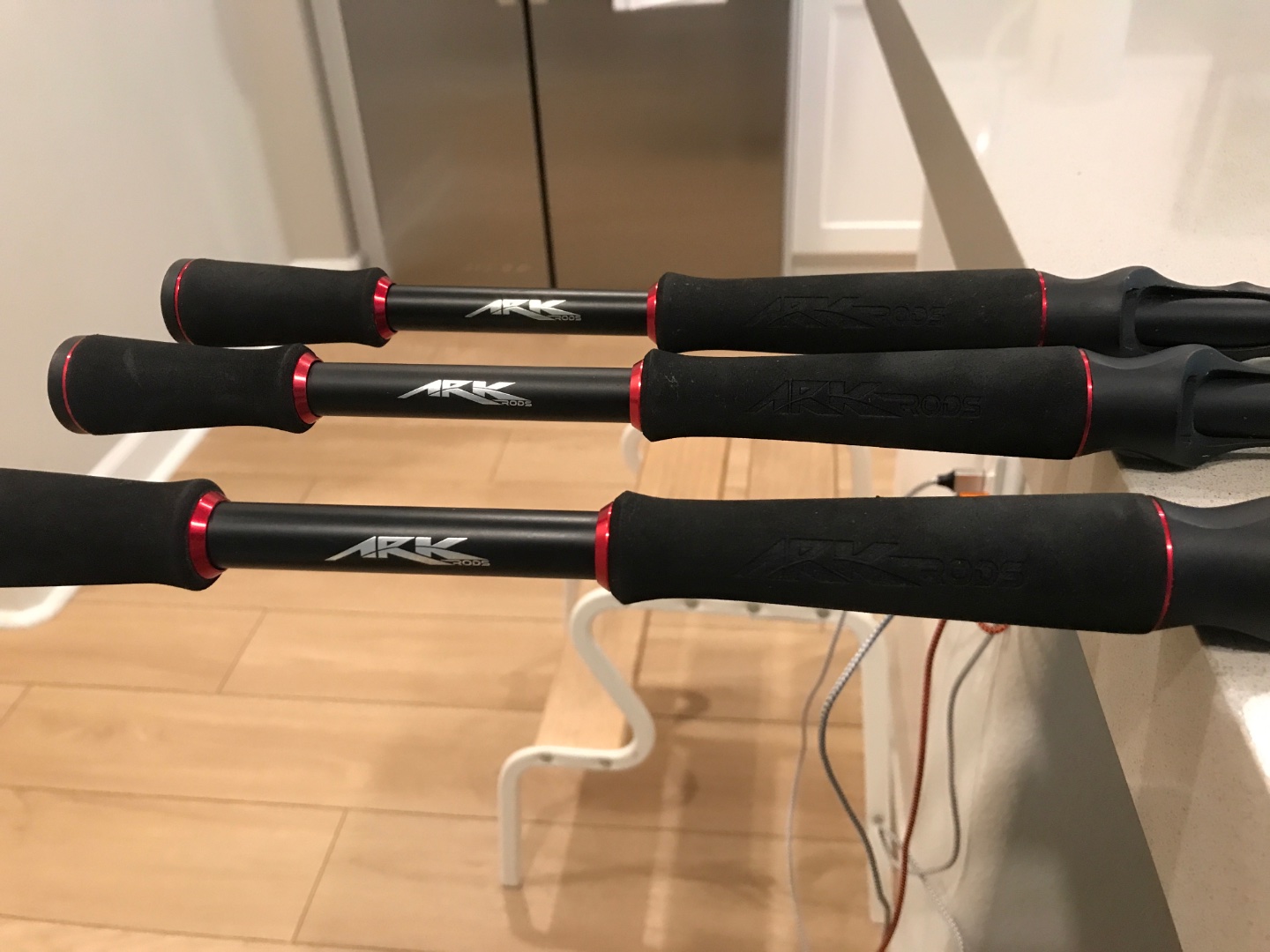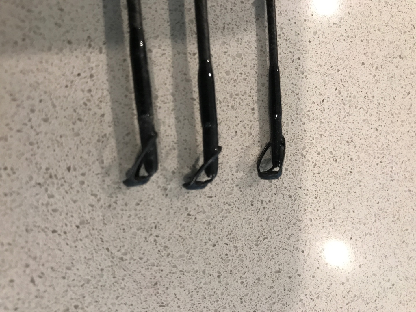 Used once, I just didn’t care for the small tip guide. If your a braid to leader guy you’d understand. If you fish straight braid, mono, or fluorocarbon, then these rods are an exceptional value. These were used once and are in near mint condition except for the 7’3” which has a little bit of clear coat peeling off which does not affect the performance.