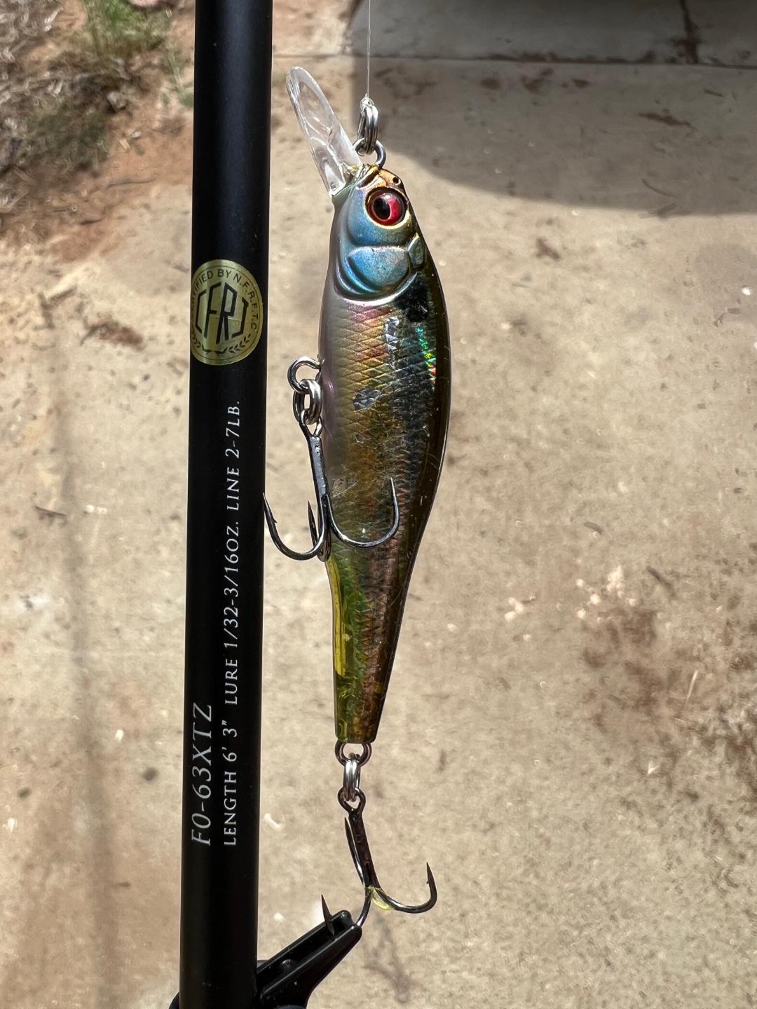 Today was ultralight day with a seven and a half foot Diawa Presso, and 1/16th oz ball head jigs. I paired the tiny jig heads with 2.5 inch mini swimbaits. I caught 6 nice bass in the the 2-3 pound range and a Crappie. So much fun on ultralight gear. So much so I am thinking of springing for a quality BFS rig. Anyone have any experience with BFS ultralights?
