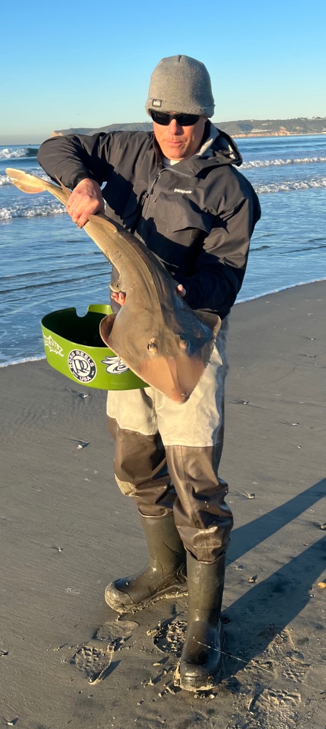 Hit up the surf this morning at Coronado with my 8 weight and 300 grain full sink line. Caught a large guitar fish that took me into my backing and also 3 perch. It was cold and the bite died when the tide started coming in too high. Got a burrito at my favorite breakfast burrito place on the way home which was awesome too!