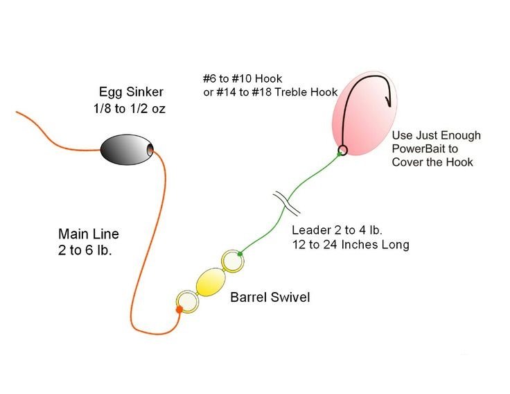 Of huge note, seems to me, consistent with the rig drawing; no trout fisherman uses terminal line weights heavier than 4# test. If you can handle 2#, better yet. At my age, I can't even see 2#.