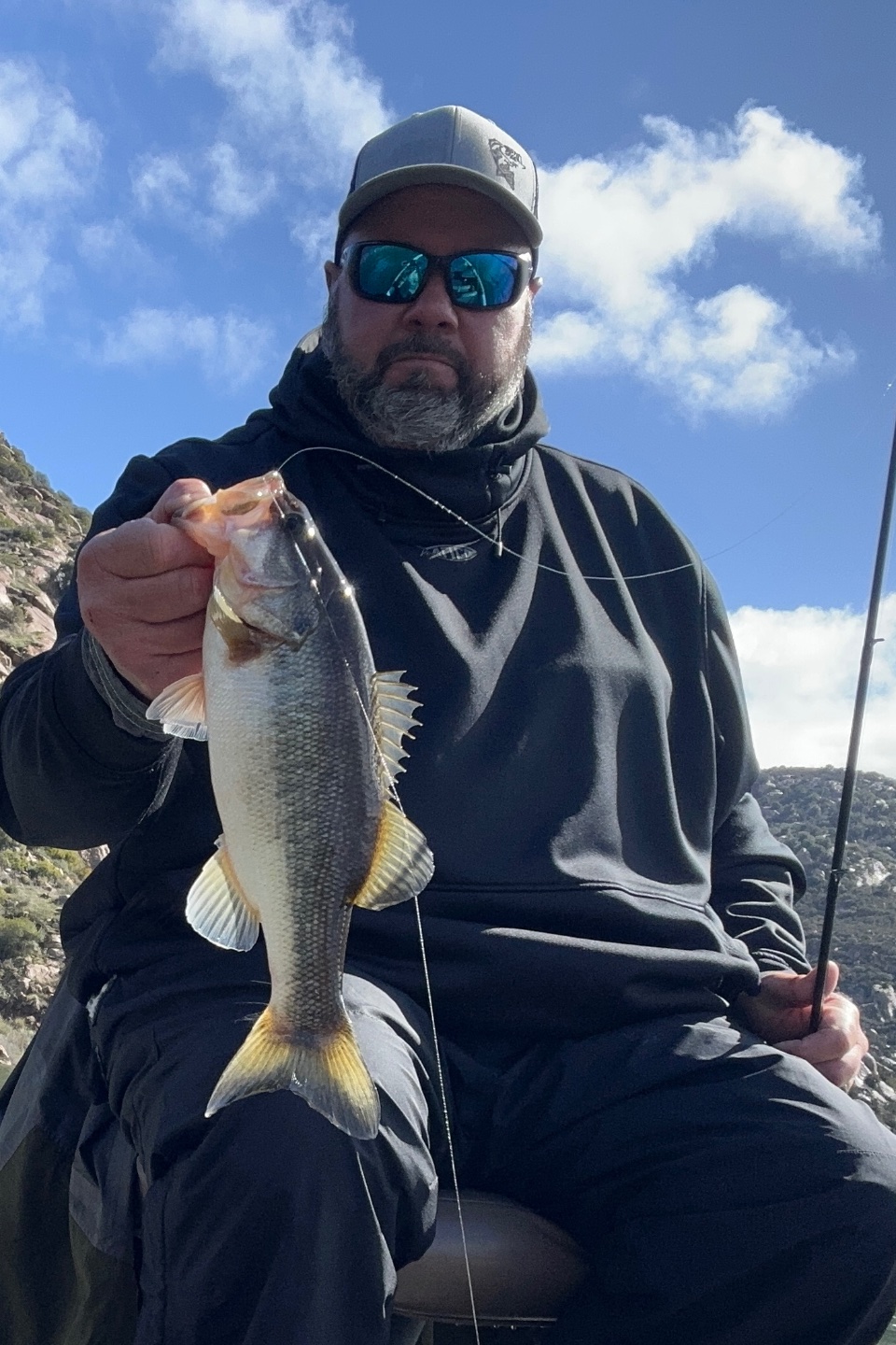 The fish were full of crawdads! Several had dads sticking out of their throat and others had really red top lips. Surprisingly I could not get a bite on jigs or creature baits, only on the dropshot. Another weird thing about the bite today, they wanted it deadsticked. Two of my first three fish came after I cast out, set the rod down to retire, or redo a leader, and when I picked my rod back up, there was a fish on. I started to let it sit for about 15-20sec after it hit bottom and 7 of my twelve hit before I ever moved the bait. I would just watch my line and it would either “pop” or just start swimming away.