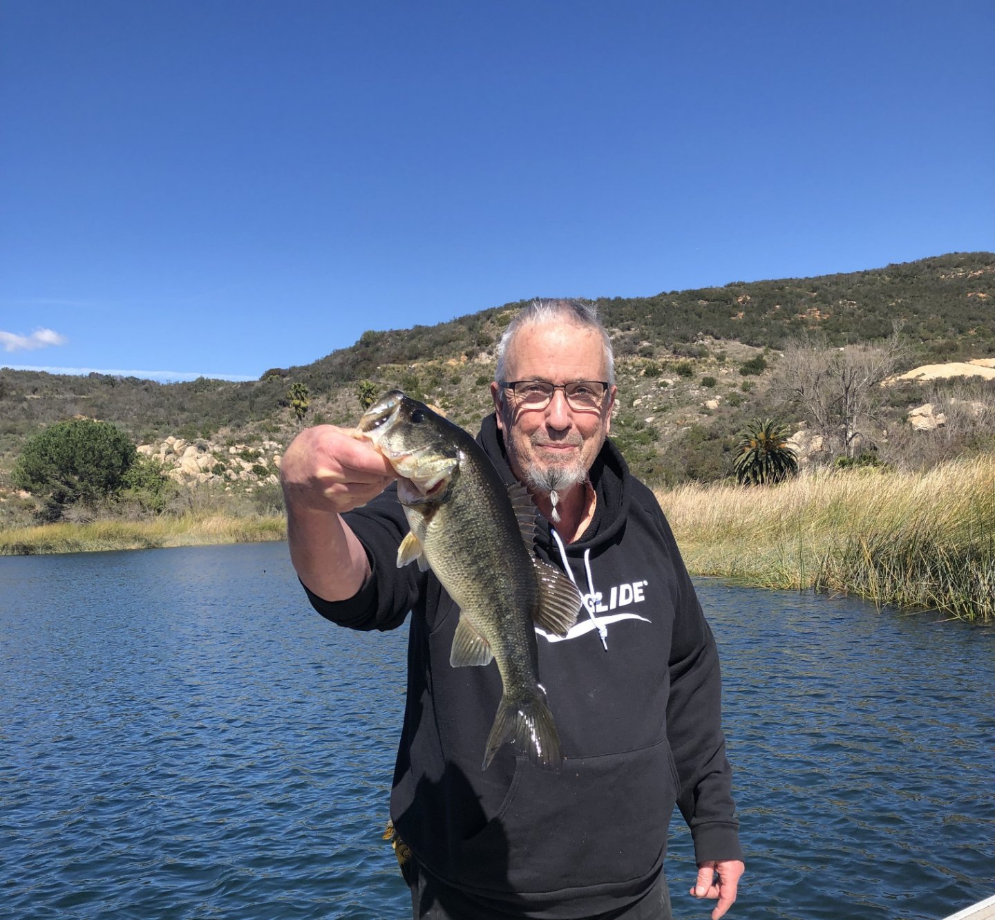 Fishing my old school marabou jig & pig and my son on several drop-shotted RoboWorms, got 2 in a pretty short period all in something like 15-20' of water.