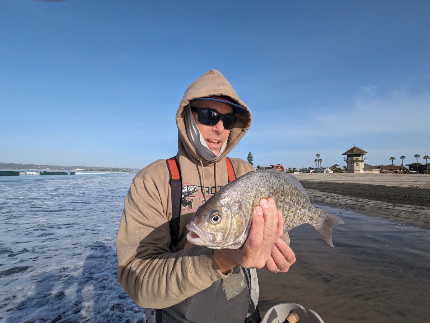 Joshmo62 wrote: Tue Mar 12, 2024 8:51 pm Hit the surf with the fly rod again in Coronado last weekend , got 5 perch including this tank! Used red surf flies like the crabby patty pattern which was super fun. The water seemed to have some smell too it from the natural Tijuana spring water but I had waders so I was good i hope.