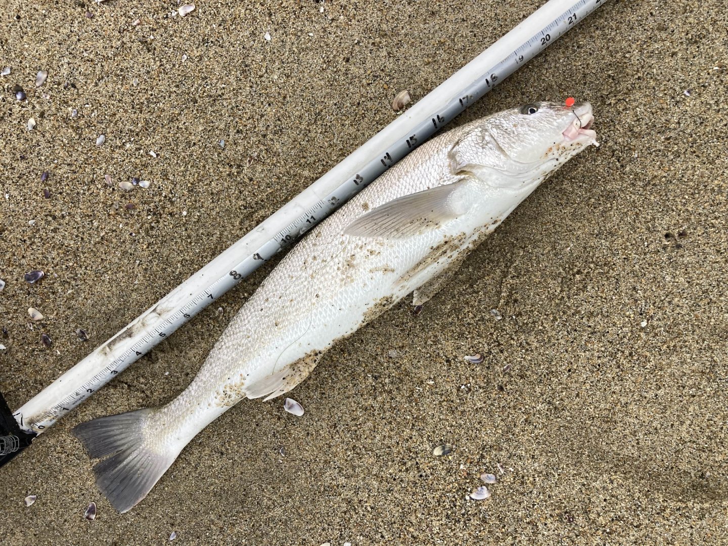 These 2 small corbina ate the same soft shell on consecutive casts. Burnout separates Torrance Beach and Redondo Beach.