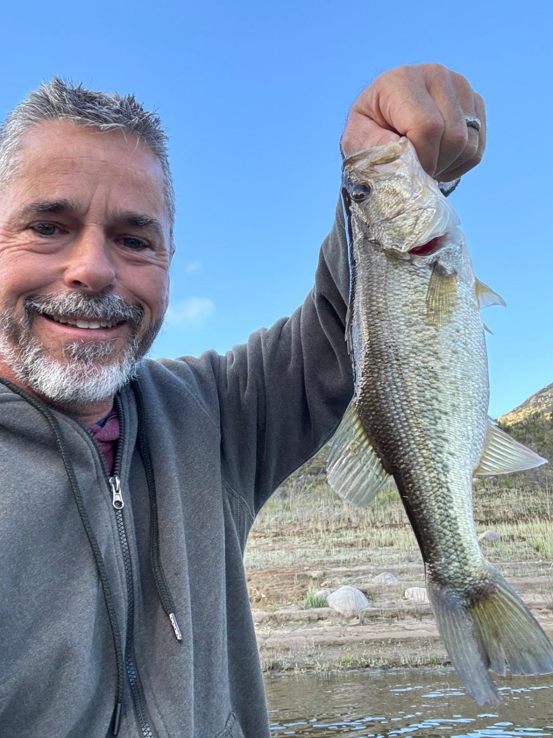 Note to self…DON’T STAY IN A PLACE THEY’RE NOT BITING!! We started out on a crisp and cold day along the stretch I’ve been hitting and catching for over a year. And why not? Dave got us started as usual with his magic mini jerkbaits and had me down 3-0 before I decided to join in. I swear he wills the fish to bite that lure. I threw the proverbial sink at ‘em with spinnerblades, deep diver cranks, jig n craw, the new Yamatanuki, and even reapers with only a dink to show for it. With about an hour to go I thought we should flip sides and hit the steeper rockier east side of the North End arm. Well dangit that’s where they’d been hiding. For me on reapers anyway. We also heard from a couple of guys we passed that they had that same result once they flipped sides and they were throwing small purple worms. We had 8, or 4 apiece. Off the water at 11:30 and back in time to work a half day.