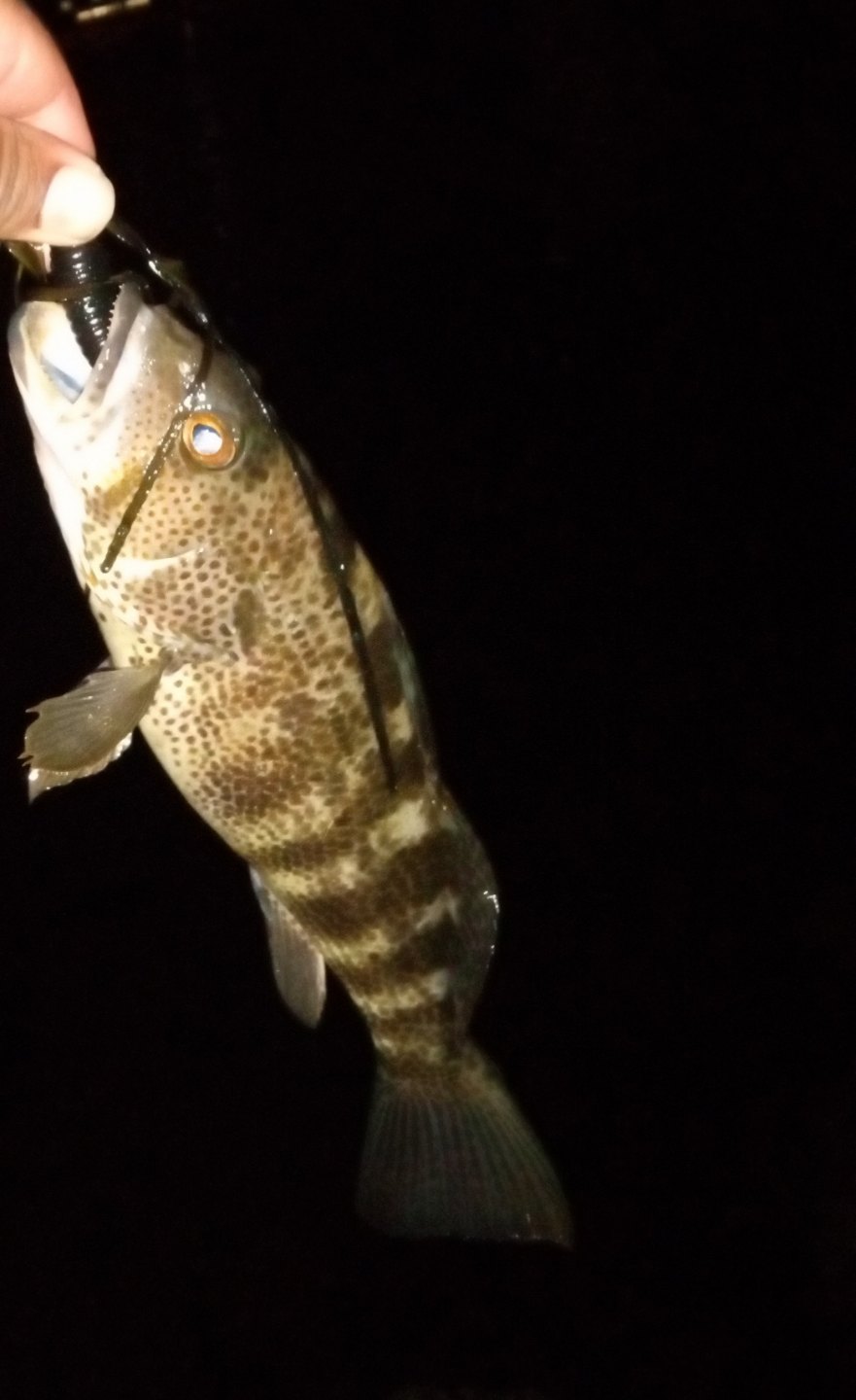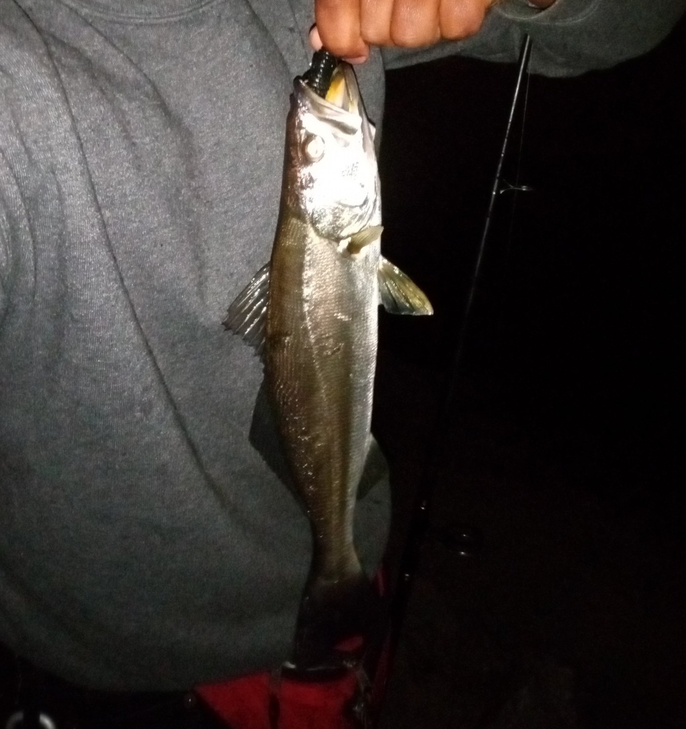 First time posting here. Fished Spanish Landing Monday and Wednesday nights. Big school of corvina on Monday, a lot of spotties and one barred sand bass on Wednesday. Fast action from about 8 to 10:15 pm. Success came on kalins solid black 5 inch lunker grubs on 3/8th oz Walmart lead heads for both the bass and the corvina. Everything released.