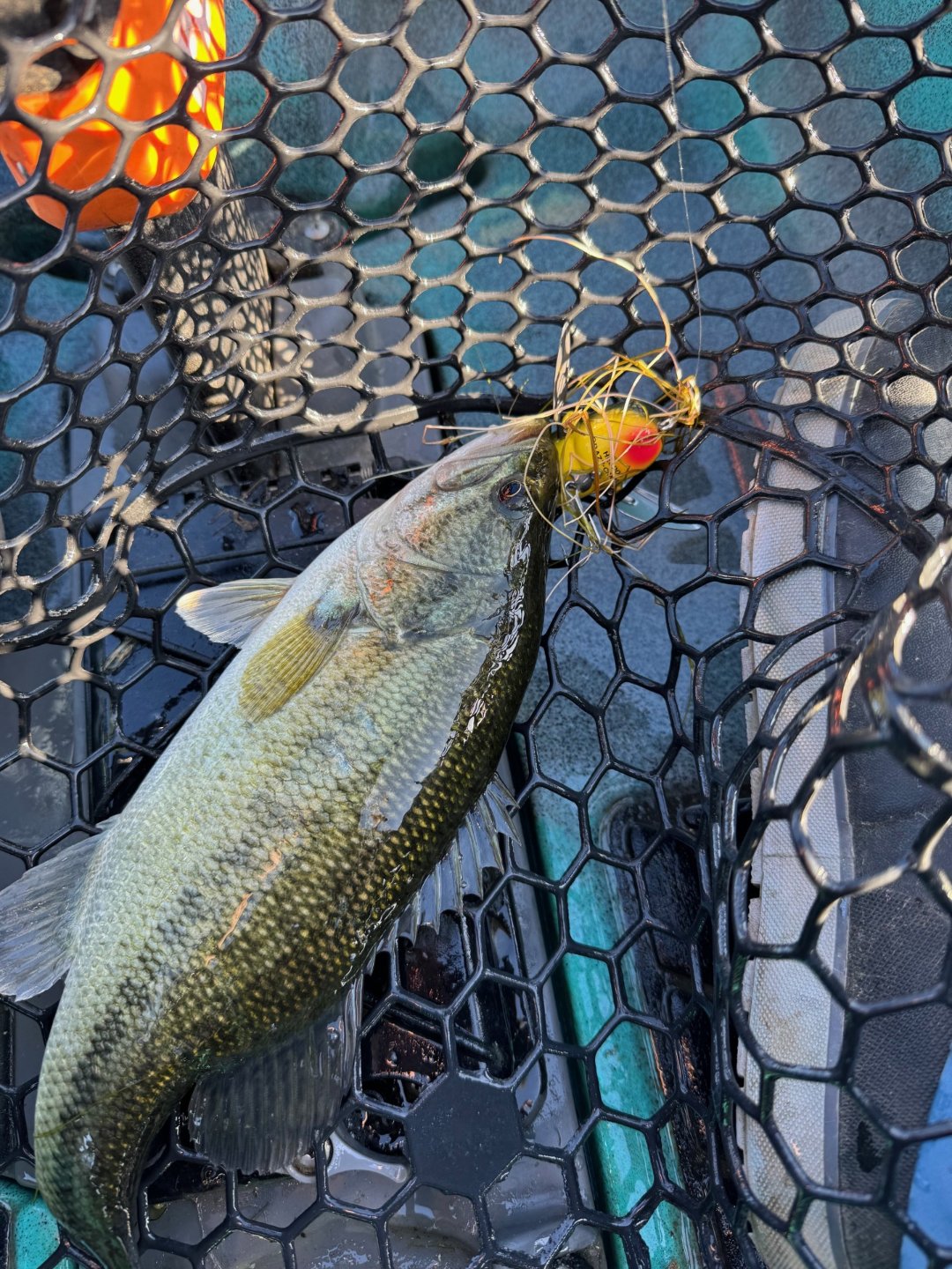 Water started out at 68F and wind was pretty calm. First fish was on a bad cast ( backlash and me picking it out in the dark). I hit the shoreline and it was before I thumbed the reel, so you can all imagine the birdsnest that resulted. Well, apparently this is all the fish needed to know and figured since I couldn't reel, my popper was a safe meal. It wasn't, I had enough of the nest cleared that I reeled over the mess and picked up a 2.5 pounder in the dark, which was kind of fun. I stayed near the shore in the shallow bay at the opening of Hauser and picked up a decent number of fish over the next couple hours on poppers, surface crawling baits and jerkbaits. I'm not sure if that whole area is called Becky's cove or not, but that's more or less where it is. What it is, is shallow on the shoreline, most fish were in less than 2 feet of water. Size was decent to good. Biggest one of the day was a little over 4, several in the 3s and most in the 2 pound range. There's a lot of vegetation too, so even a 2 pound fish can be a struggle.