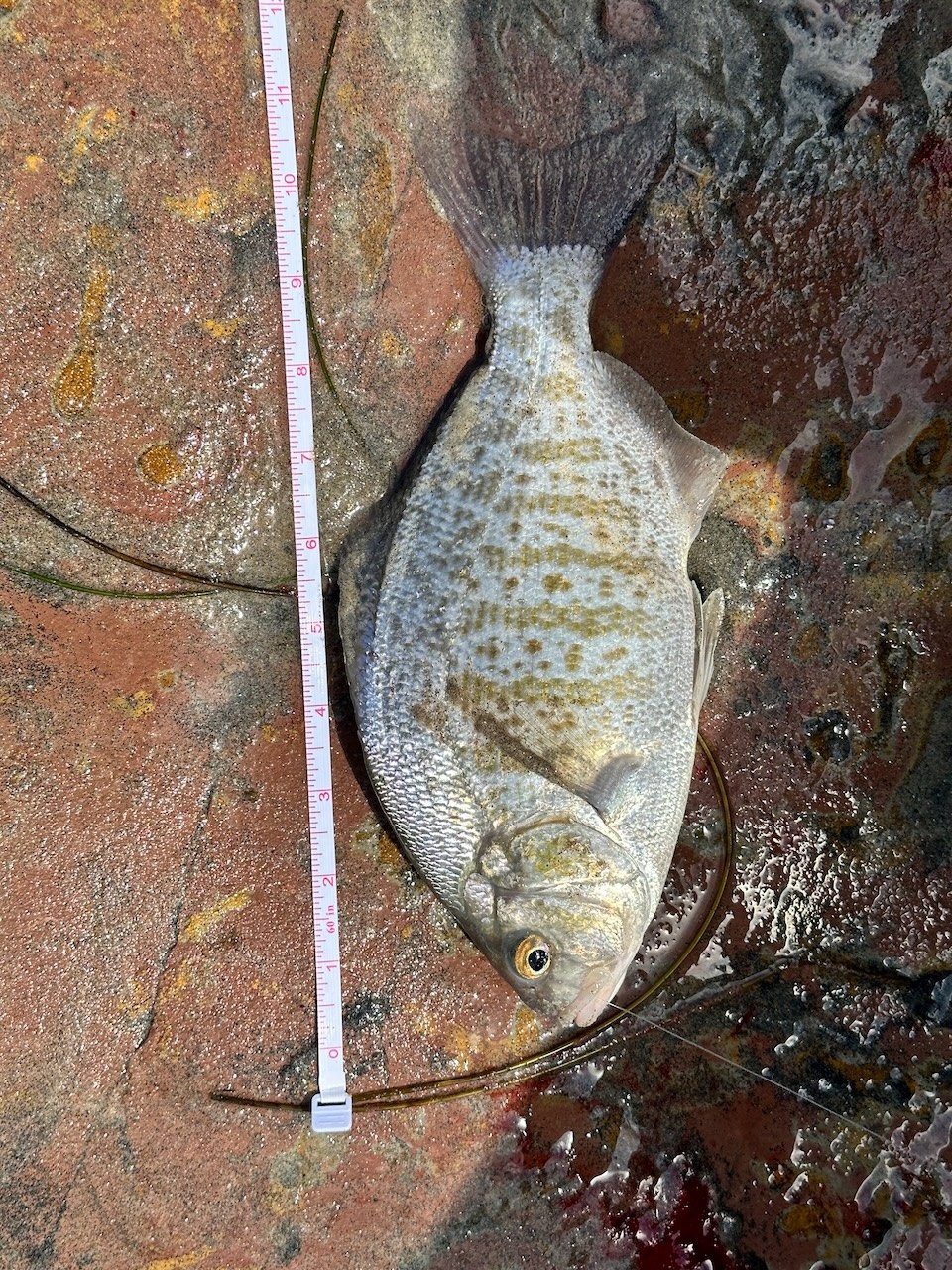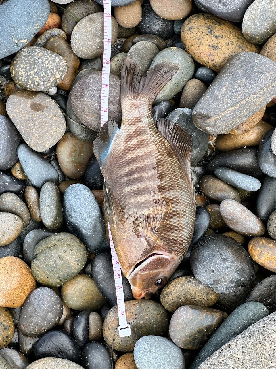 The surf has been pretty rough the past few days and chock-full of salad. I've been trying different spots in north county, with mixed success, so I decided to circle back to this year's honey hole, and it produced from the first cast. I landed my first ever black surfperch. Both of them put up a nice fight and peeled my drag. Interesting how different their coloring was, when comparing the first to the second. I kept getting snagged on eelgrass and floating kelp, so there were lots of re-ties that kept my line out of the water for longer than I'd like. Regardless, it was a fun session, with two black SP and three BSP. Fun sesh...