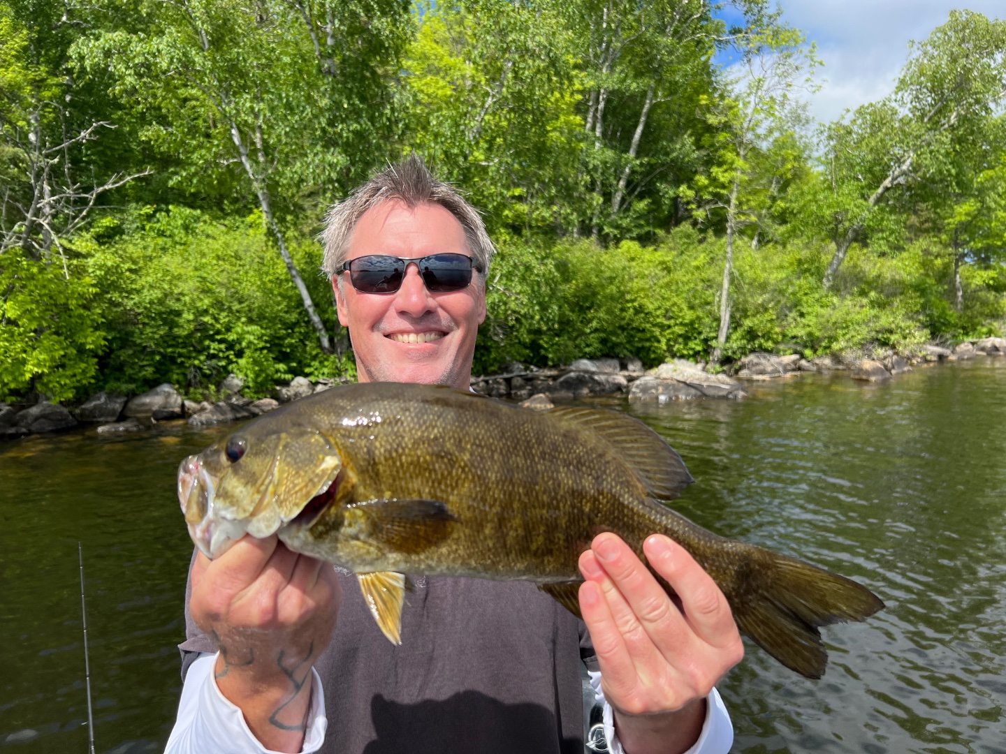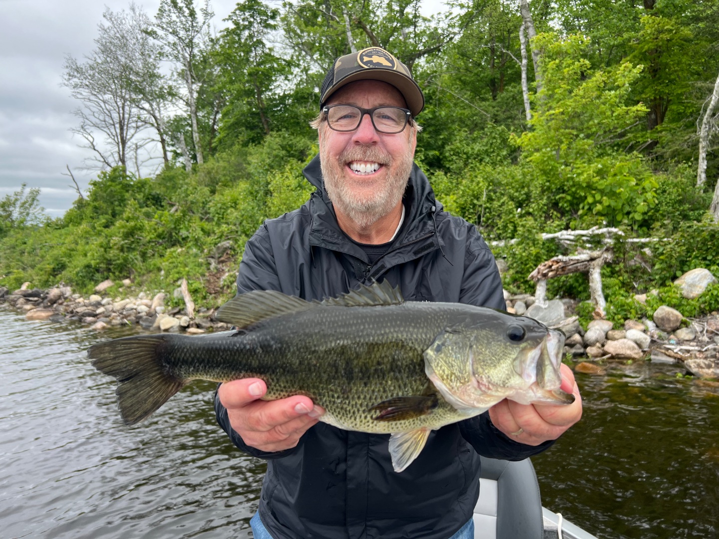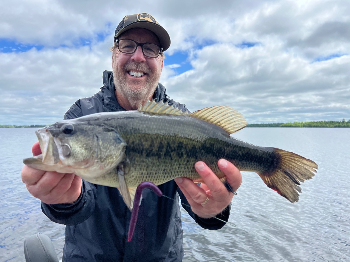 Back here at Pelican Lake in northern Minnesota with my buddy Scott for our annual angling extravaganza. The first day started out cold and windy but the afternoon was nice along with the fishing. We got about 45 largemouths and smallmouths between us with most of them nice three pound chunks. Senkos, fat ikas and craw baits worked for us. Got a few in the evening on whopper ploppers. Weather looks nice today so we’ll be back at it.