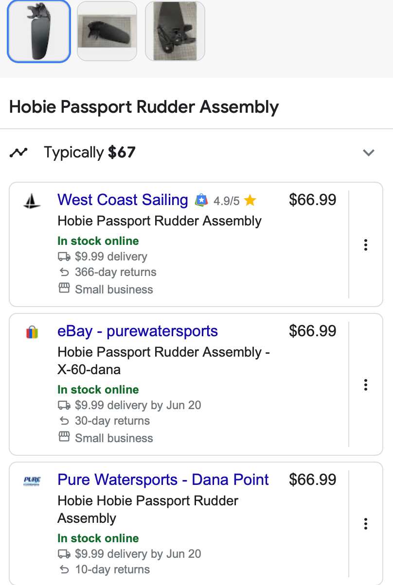 I have a Hobie Rudder assembly that came with my 2024 Passport and it has only been used 4 times and in great condition.