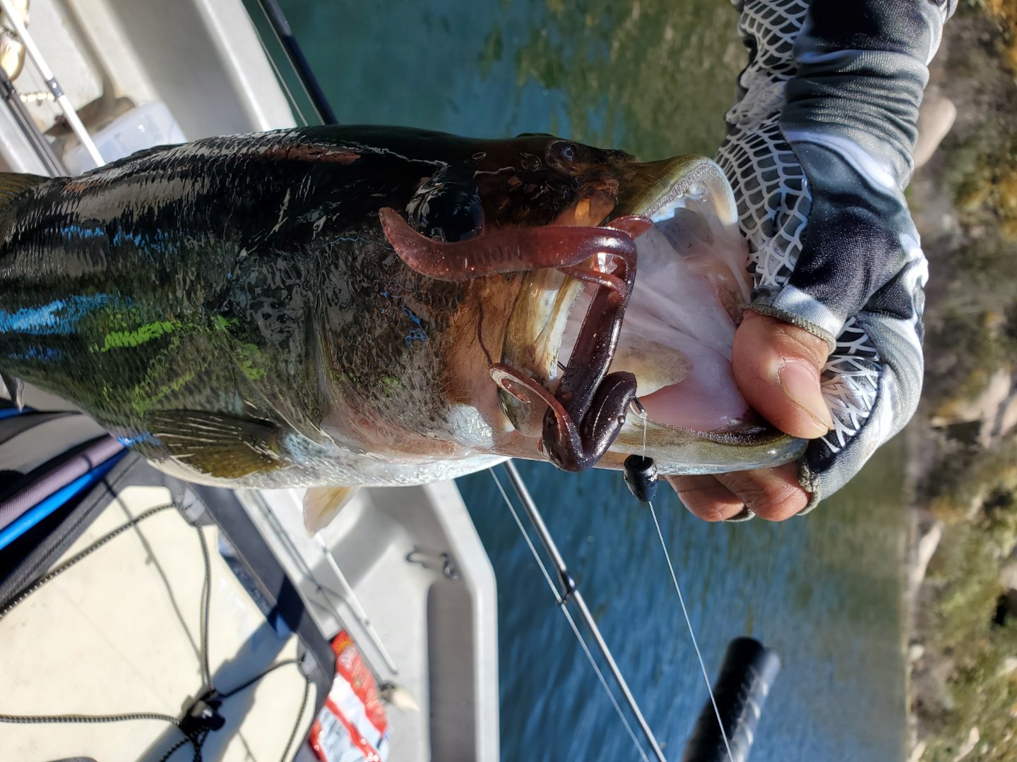 Bite really slowed down around 10ish? i Trig a red lizard after one fish just to get my plastic itch out the way i put it down and grab the crank again once the sun came up hot it completely died off a few busters here and there by 11 we started to head back I stopped at the first cove by pigs, threw topwater,wacky rig,trig,crank,big worms,small worms,swimbait,no takers.... flipped the same route out and pick up 2 more fish on the lizard