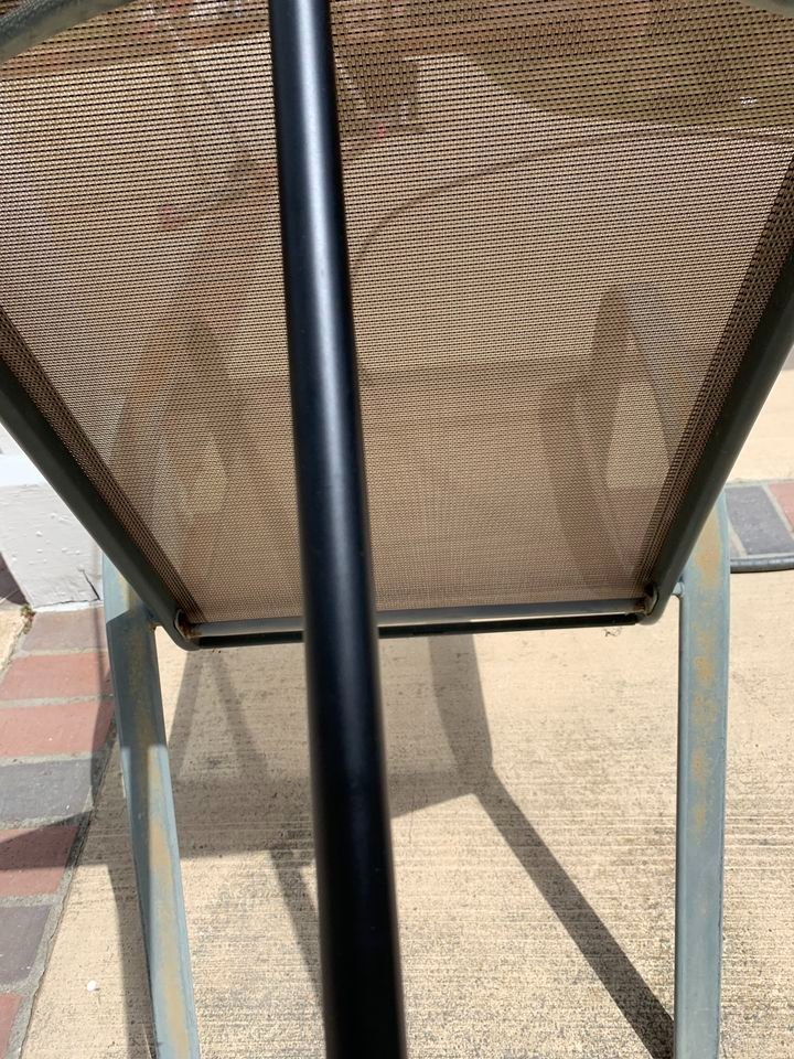 Photos of it leaning on a chair outside.
