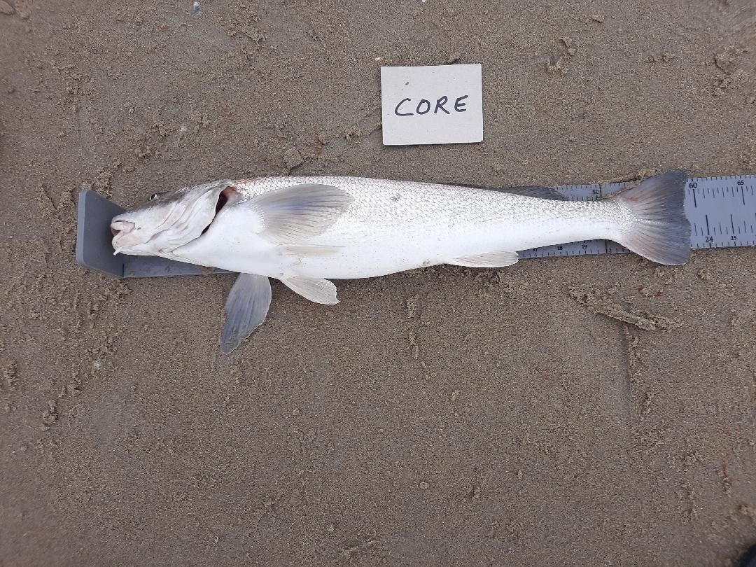 Got out yesterday morning to see if my comment to @cajunjacket's "picky corbina" post would come to fruition. It was perfect conditions and finding a huge hole was the bonus. Picked off 3 during the last hour of the outgoing tide, 14", 16" and 18". Bite faded off during the low slack but right at the turn this 23"+ tank hit like a freight train. Must have made close to a dozen runs & took me more than 10 minutes to get in all the while I'm thinking don't break me off. As far as any beans in the skinny water, I did not see any. A fly guy saw a few but wasn't having any luck.