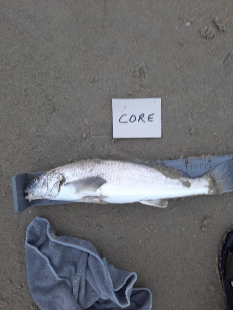 morning to see if my comment to @cajunjacket's "picky corbina" post would come to fruition. It was perfect conditions and finding a huge hole was the bonus. Picked off 3 during the last hour of the outgoing tide, 14", 16" and 18". Bite faded off during the low slack but right at the turn this 23"+ tank hit like a freight train. Must have made close to a dozen runs & took me more than 10 minutes to get in all the while I'm thinking don't break me off. As far as any beans in the skinny water, I did not see any. A fly guy saw a few but wasn't having any luck.
