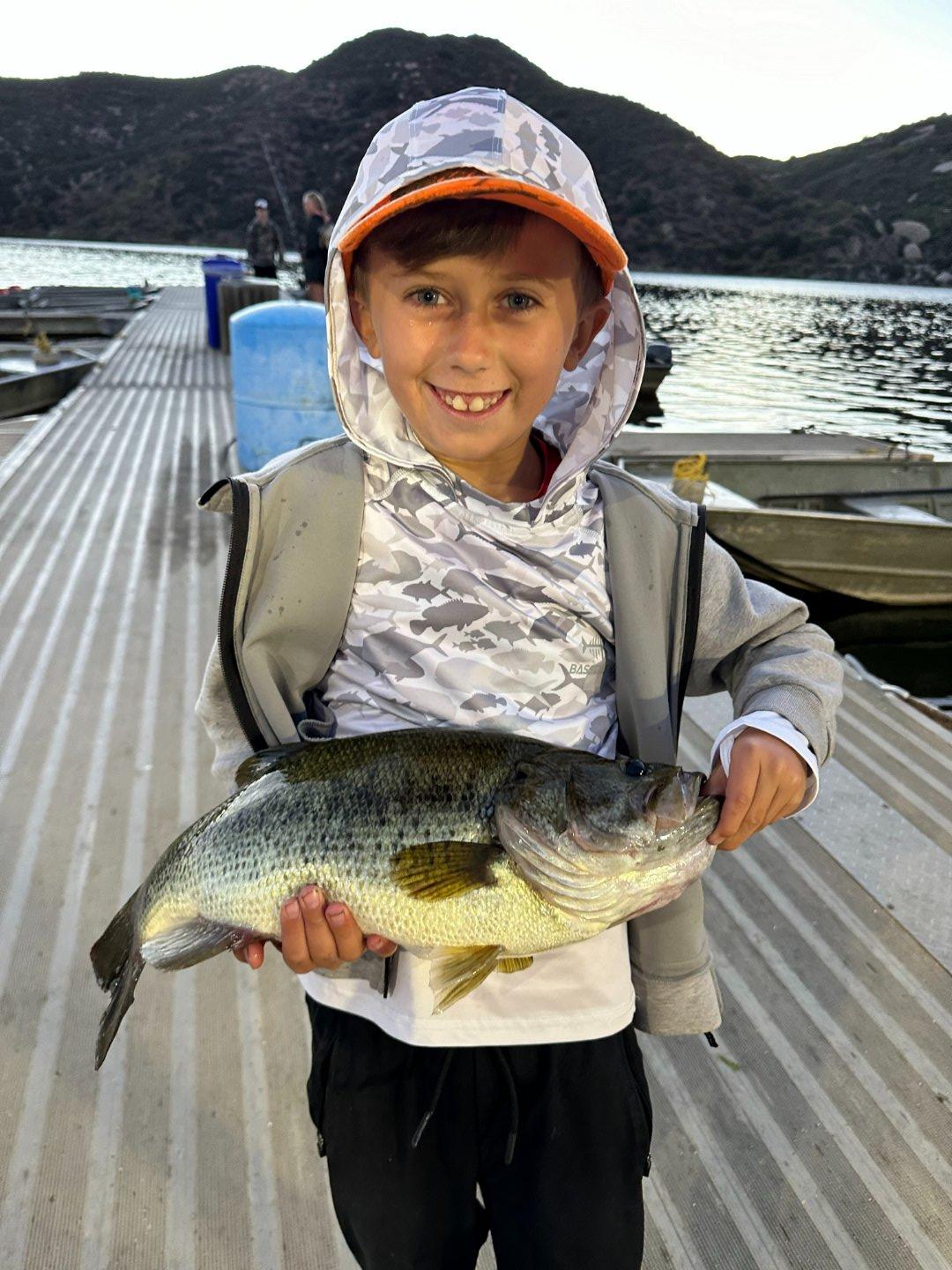 Theo caught the biggest fish of the day before we left the dock at 5:30am. No scale, but this one was a chunker. We went to Hauser and were greeted with non-stop busters chasing small 1.5" shad. They were everywhere. We had some success with whopper ploppers and crank baits, but I could tell they were only really interested in small shad. We picked up a buddy at the dock at 10am, then went to Pine Cove. Lot's of people, but few fish. Back to Hauser by around noon and I was surprised to see the busters still happening (though to a lesser extent). We even got a double up, but as you can see one of the fish was much much smaller than the other.