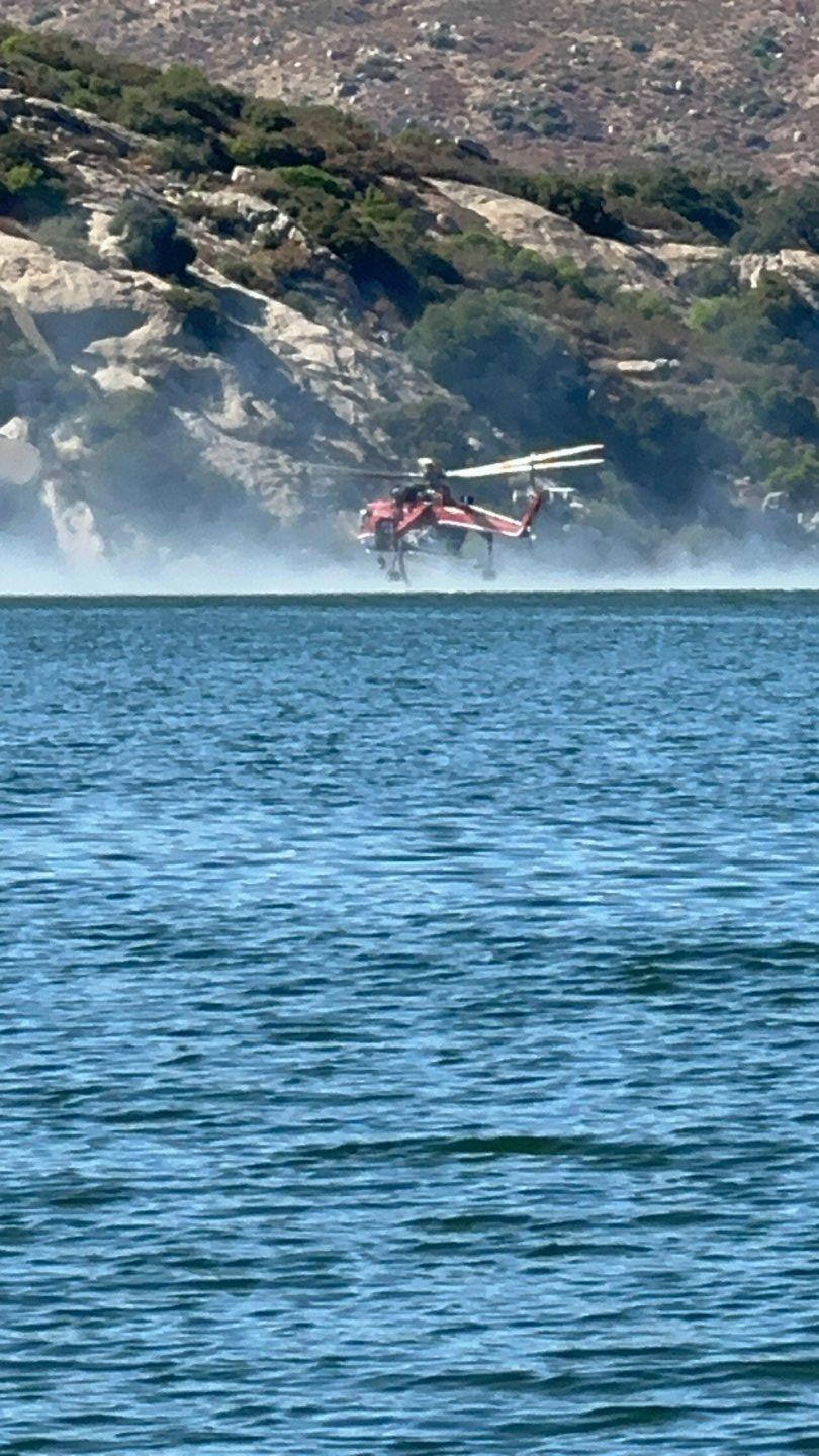 Dropped our buddy at the dock at 3:30 and got a close up of these fire helicopters getting water to douse a fire by the border. Went back to Hauser and fished the busters until dark. Super fun, but really mild success compared to the two boats fishing nearby -- it looked like a fish every cast for them.