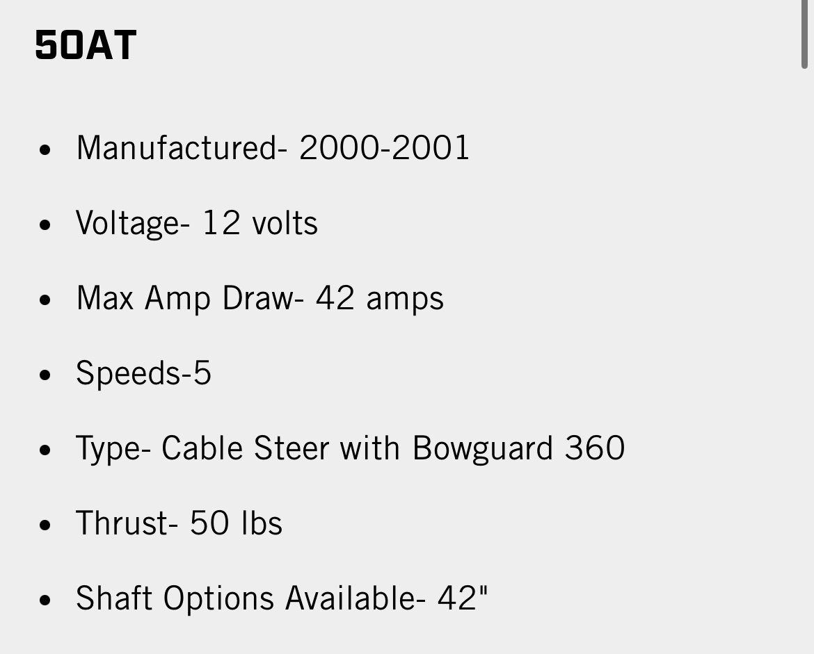 Had a Minn Kota All Terrain 50AT trolling motor on my boat, but changed out the configuration and don’t need it anymore. has foot pedal control, 5-speeds and 50lbs of thrust. Ready to be installed on your boat.