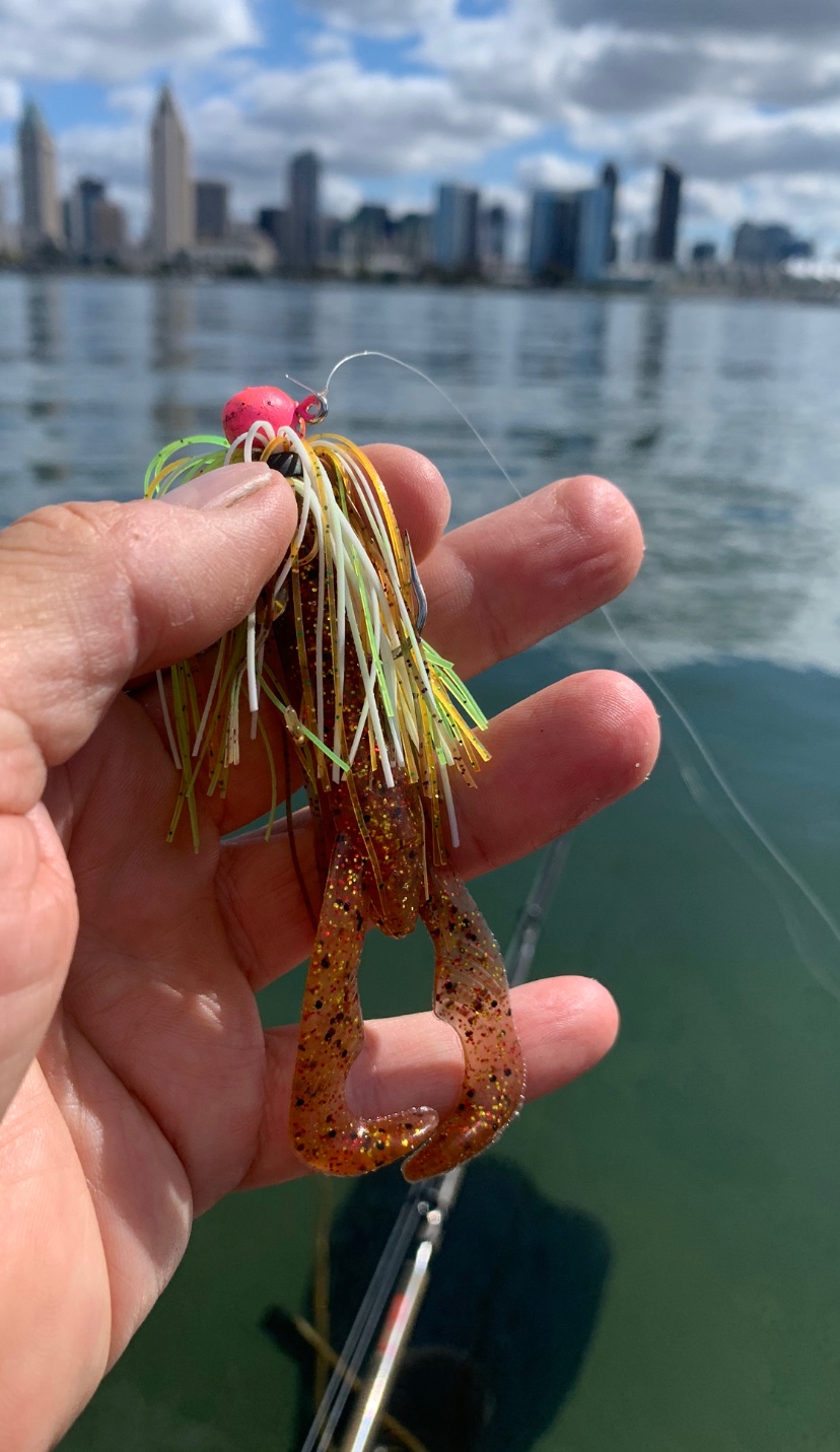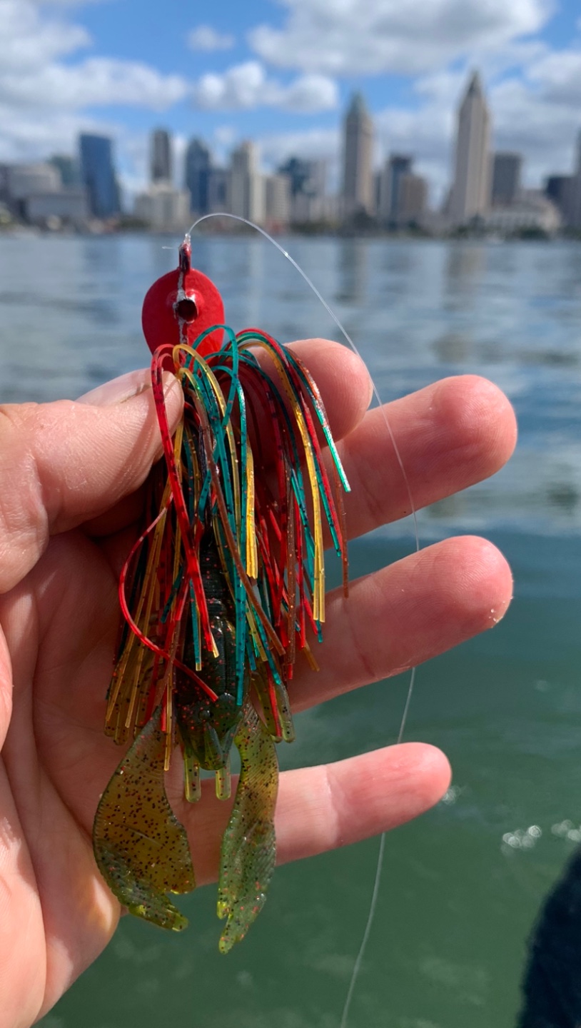 I had a 1/4oz jig on 6lb and 1/2oz jig on 8lb. Crawling them deep in the middle of the bay. I got out at 12:30 cause it got crowded and windy.