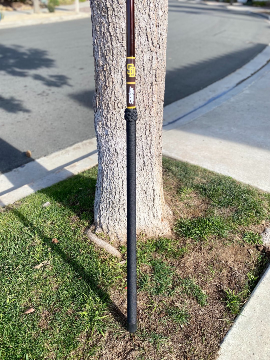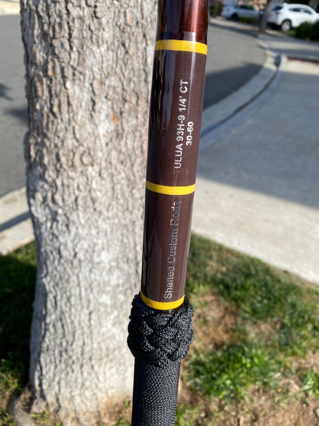 The blank was cut at Seeker, 4" off the tip and 8" off the bottom to make this a 93H 30-60lbs blank. The cord handle is 33" and along with the turks head has been treated. The guides and tip-top are Alps titanium with under wrapping and over wrapped with ProWrap ColorFast thread with 3 total coats of Diamond D2 finish.