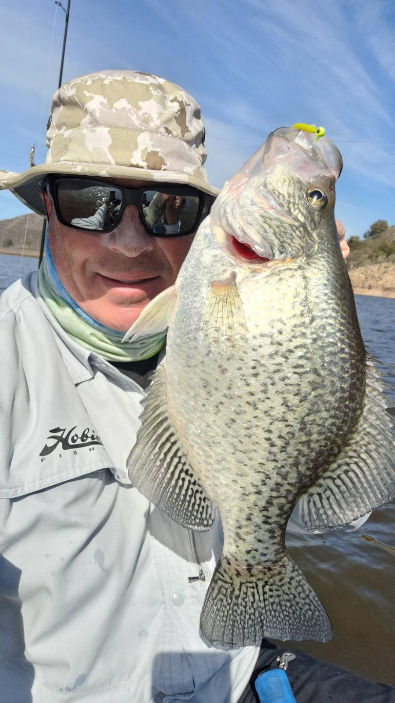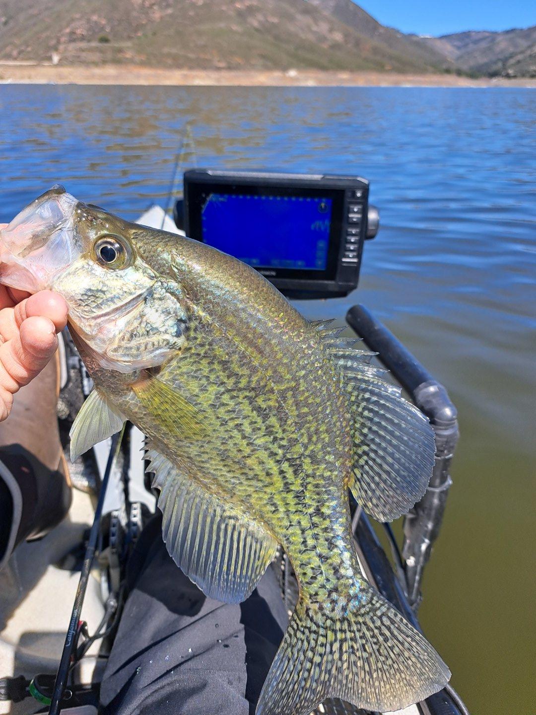 Lake Hodges 2/16 and 2/22. A few crappie and a couple nice bass both trips, some crappie released. Using various crappie jigs "out in the middle". Water temp 58 early and 62 later.