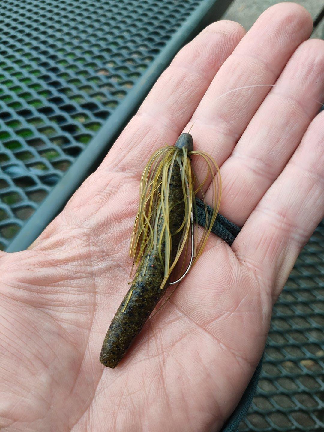 I wanted to share a rig that has really been slaying for me recently. It consists of a tiny 1/8 oz. skirted punch weight made by Nako. I use a 2/0 round bend worm hook in a Z-Man TRD. (See picture) It's incredibly weedless for what amounts to a jig. I can cast it right into the tules, let it fall to the bottom and twitch it back, with that Ned standing up. It's been a killer for that application.