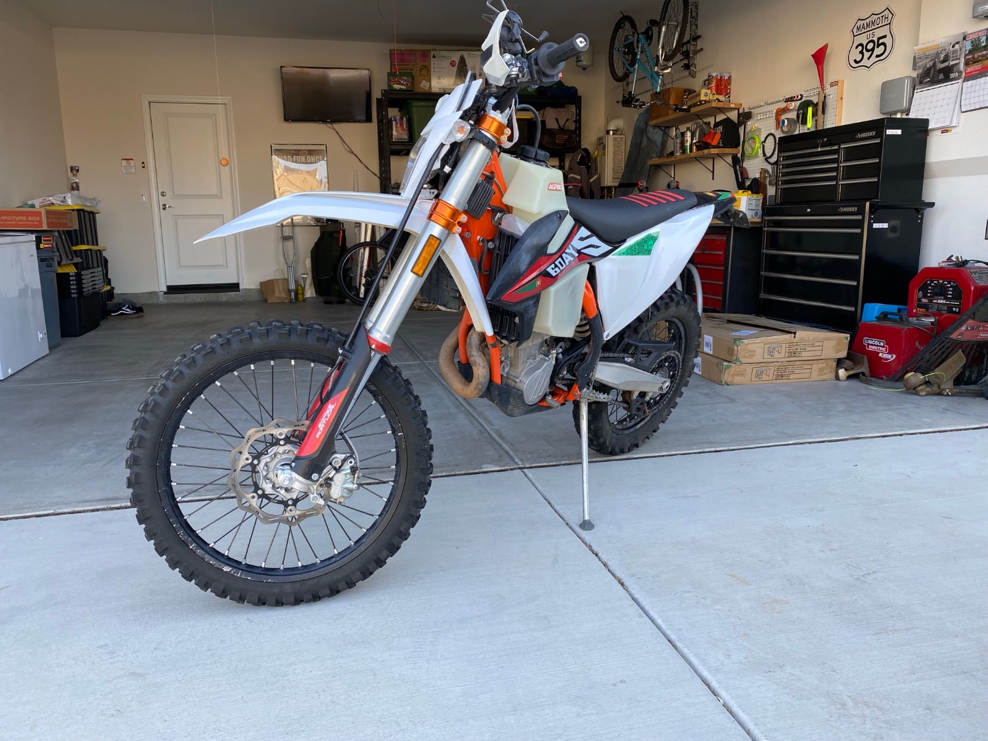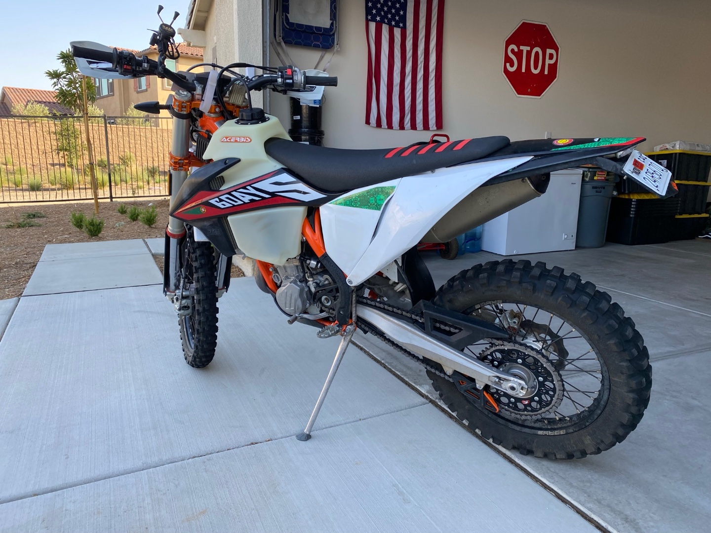 2020 KTM 500. 6 days edition. 70 hours. 2,000 miles. Acerbis fuel tank. Best Dual Sport bikes full setup with piggy back fuel programmer, air intake tube, exhaust manifold, free flowing exhaust, and 90° fuel rail. Re-sprung for 230lb rider. The bike is in good condition and runs well. Only selling because I don’t use it as much anymore.11,000OBO.