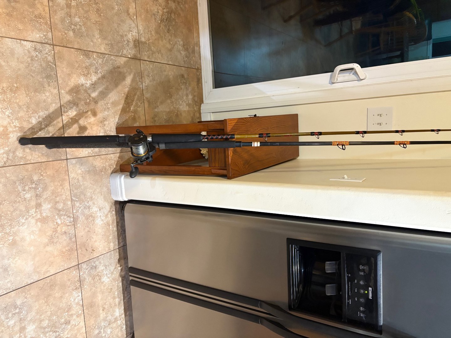 Two rods: Very low-use tiger stick, 20-50 pounds. The second road Seeker American Deck had style, measuring 8' and weighing 20-40 pounds. This is not the typical Big-5 garbage, but rather a high-quality, second-hand rod in excellent condition, and a relevant offshore model—one with a broken eyelet, included, because I just dropped the rod on the tile floor, making it a free rod, worth getting the eyelet fixed.