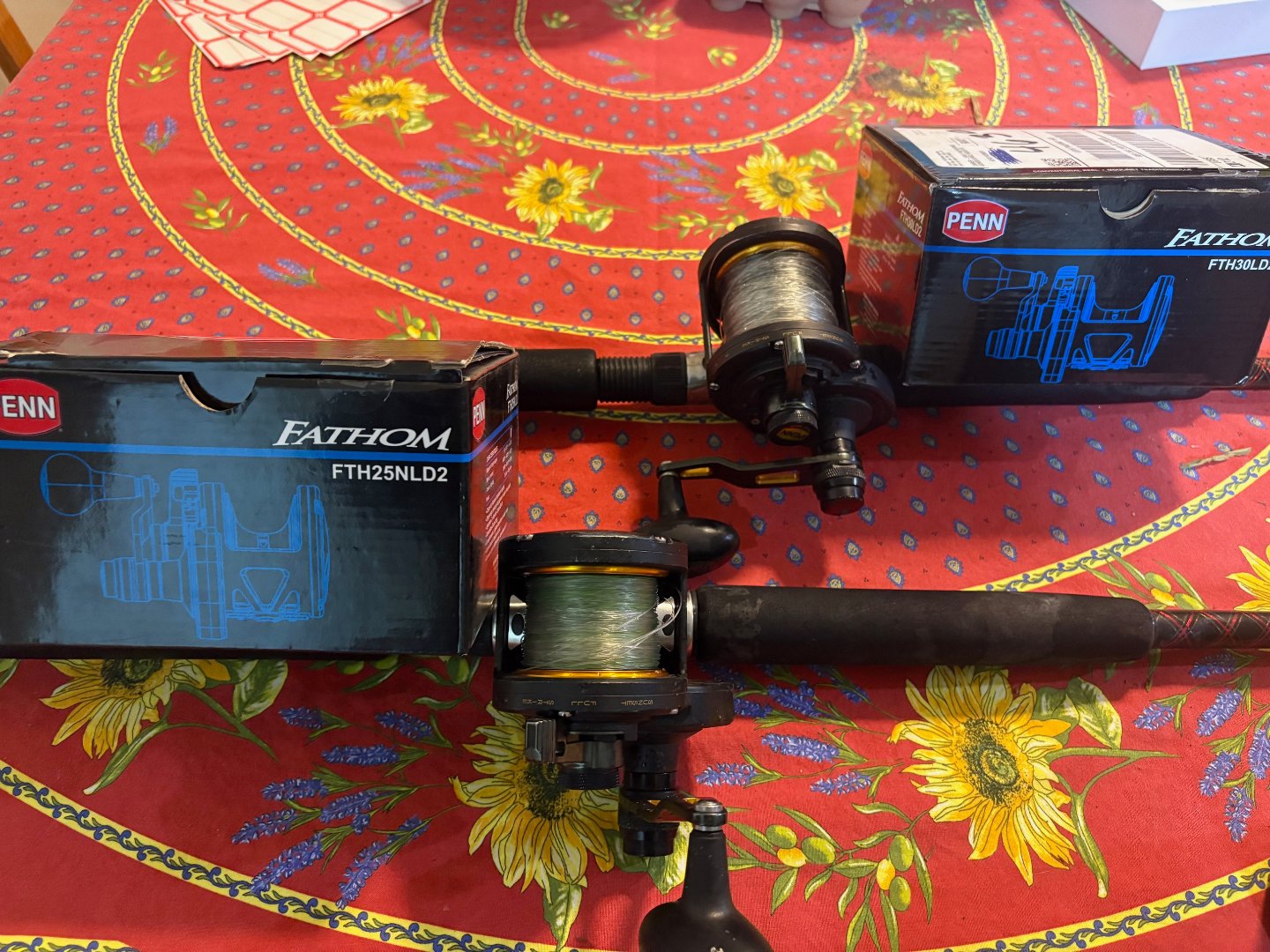 1 Fathom 30, which is a wide version of the Fathom 25 2 Speed. It's spooled with good-condition 65-pound braid, which could be KastKing or Power Pro. Top shot optional. I fished this from 25-50 pound top shot—new condition, underused by far, one owner - me.