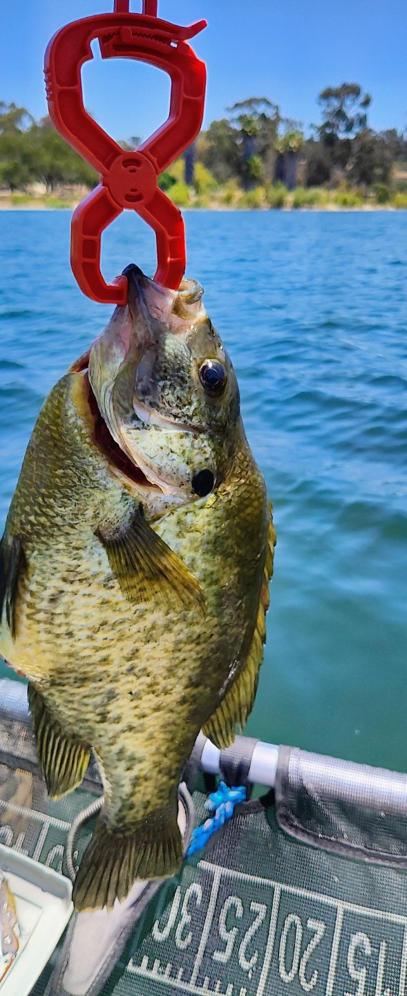 After the topwater died down I decided to throw on a small crankbait and troll it around a bit. Finally got a picture worthy fish. In fact it was the biggest fish by weight of the day, but nope not a bass. It was a 21/4 pound Bluegill. It's belly was so big it looked like it would burst. Caught maybe 6 nice gills on the day too but nothing like that big mama.
