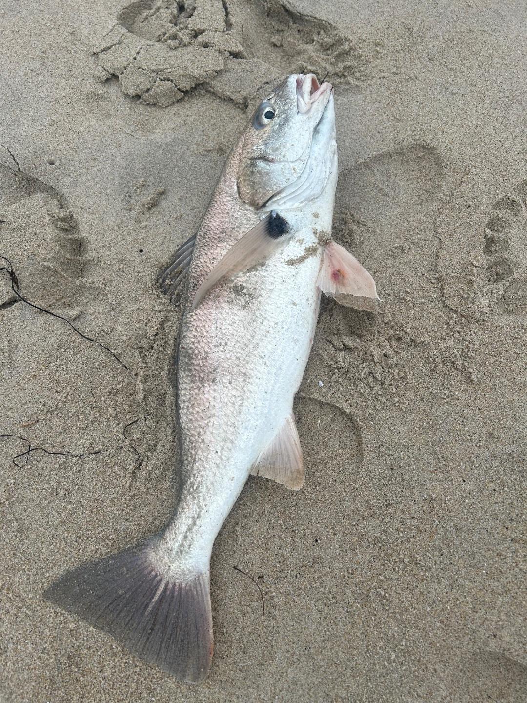 Wrapping up the morning at Mission Beach, arrived around 6:30 with pretty much the entire beach to myself. Caught a croaker early on (my first!), a walleye, and then around 8:30-8:45 pulled in 4-5 BSP in the span of 10–15 minutes.