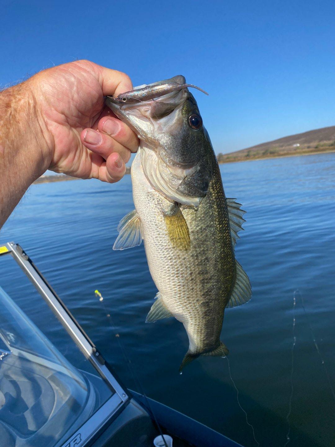 Got there at sunrise and not many boats. Got some info to go back to any of the big coves. Went into harvey arm about 3/4 of the way back, I found them. They were not busting, they would not hit anything and not really follow the baits. Funny thing boats started coming in and at 8:30 bam. Busting began in bunches, what a blast. You just needed to be around the boils fish on. After about 45 min. they settled down a little. I was using BFS and had to fight the fish. Others would ski them in. I tried fishing the bottom, I knew I was dragging it threw them, only 1 bite and was the biggest I hooked for the day. Lost on the jump. I ended up with 26, nothing landed over 2 1/2. You are going to see in one pic what I was using ignore that. There was this osprey that dove, picked up a bass that he had a battle to get back up fling. I tried to get a pic.