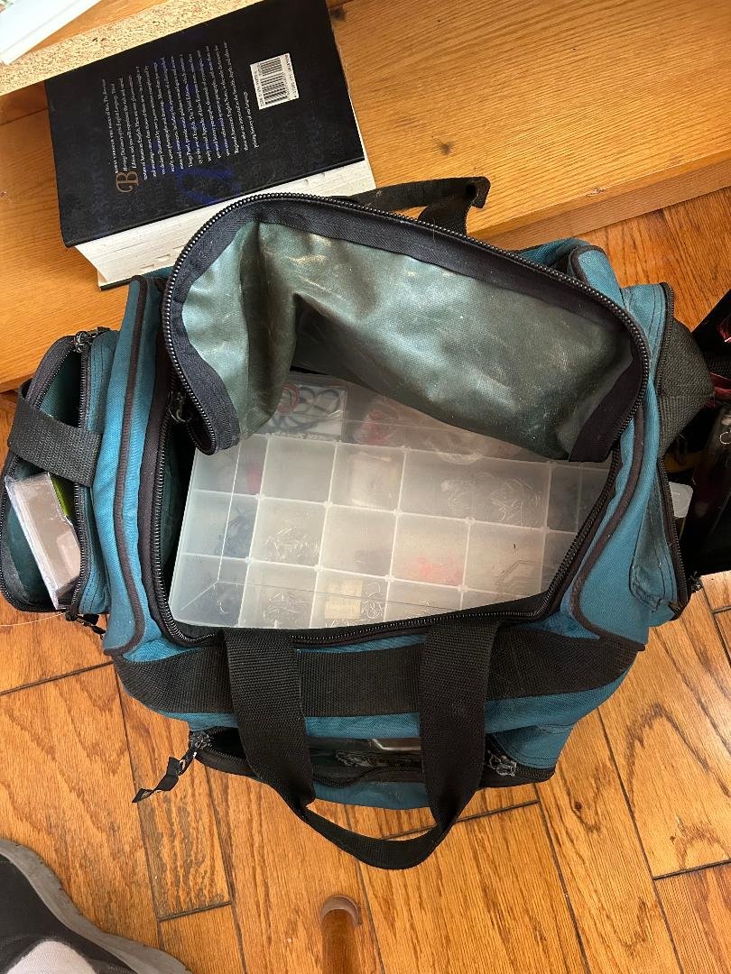 big used Cabella's bag and tons of tackle and 5 Penn 500's all working
