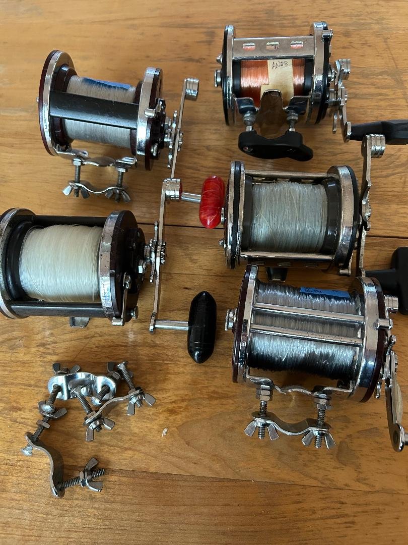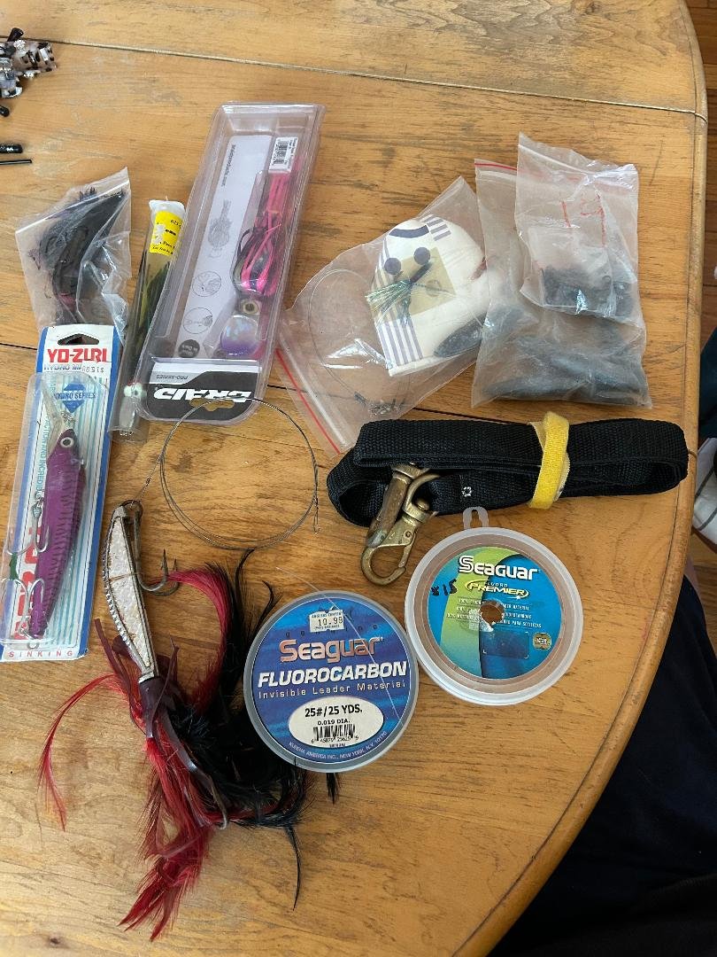 Heavily used Caballa's big bag with: 4 good shape Penn reels, all 500's, one with a Newell spool all work fine. SOLD the 505. 5 bags of wire Wahoo leader, 26-174lb., many new hooks Owner, Gamagatsu, and Eagle Claw, small hooks and some (4) tied, wired Wahoo bait hooks, some trolling baits. Black tuna lure and Mean Joe Green whistling troller, and a Yo-Zuri diver... and a Wahoo troller, a trolling rail strap, weights and bait catchers, three spools of Floro., and three boxes full of rubber and heads weights and one box with many hooks, sized from #8 to #7/0, see the pics. More pics but couldn't load then all, I'll put them in a second post