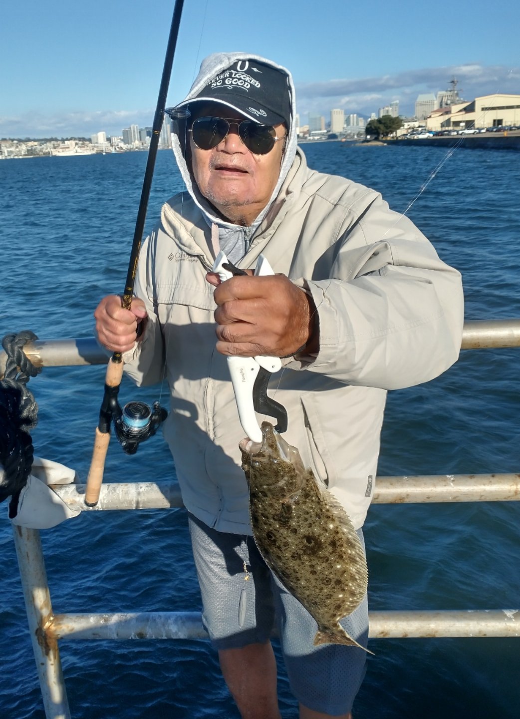 My father and I caught some pinky size live smelt off of the Ferry Landing pier then headed to North Island for a two and half hour afternoon session. I was practically skunked landing just a cigar size lizard fish that gulped down one of those pinky size smelts at the end of my hook throughout my session; meanwhile my father landed an undersize hali, a black croaker, an a 26+ inch striper! needless to say, he had an outstanding session!!! he still got it at 91 yrs old 8-)