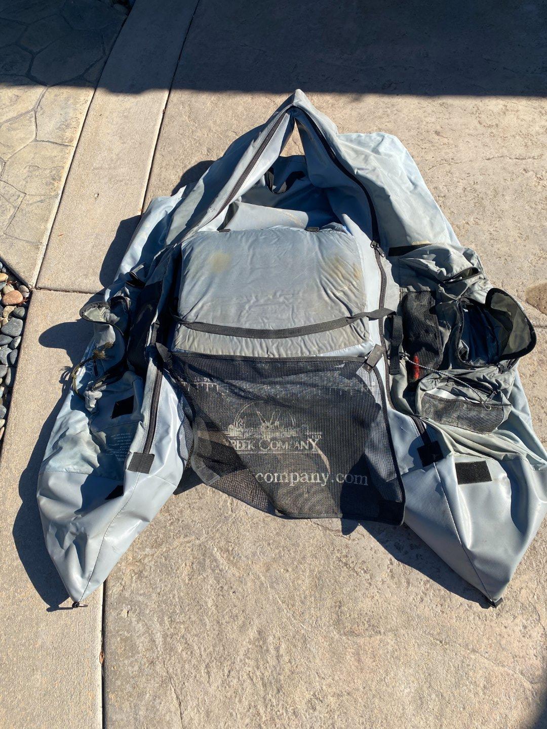 The bladders are in great shape. The compartments are worn. The seat has foam added to my liking and the back rest could use new foam. Easy fix. Comes with pump. It has plenty of trips left in it, I switched to pontoon. $70 PM if interested