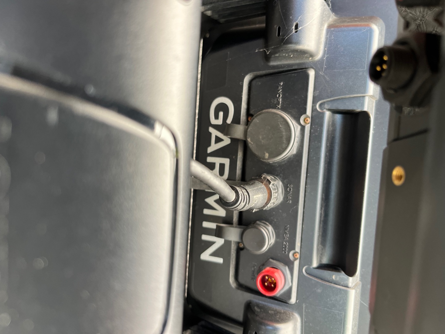 7” garmin echo map 7cv- touch screen-comes with transducer- power cable connector is included but it is short. Fitting for cable is not included ( small plastic threaded cup that goes over cable ) I’m not sure where it is. Still plugs in fine. Very cheap little part.
