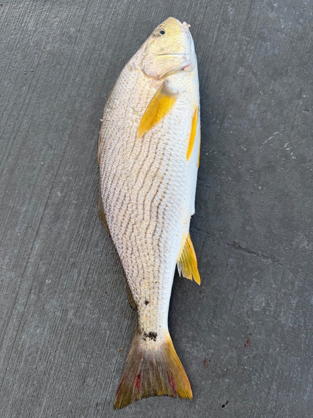 Got to Shelter Island around 550, and being the creature of habit I am, started by the launch with the dropshot for nada, not even a mack or lizard fish. packed up and went to the Bali Hai dock. Yes I know, no fishing, but I'm usually gone by 7 or so and the employees have always been cool, even giving me ice when I caught something worth taking home. Casting towards the open water and got 2 lizards and lots of missing tails from my Gulp smelt. Switched to a slow pitch jig and a few casts later something decent hits and starts pulling, I knew it wasn't a bass by the way it fought. Got it up and it was my first Corvina! (Corbina?) measured just under 13.5, missing a pectoral fin. Got a couple pics and sent it back. Turned around and made a couple casts towards the rocks and another good hit and fight. Again I knew it wasn't bass. It was a YFC! Haven't caught one of those in about a year. Another couple pics and sent it back. Slow day overall and I called it at 9am, but happy to add a new species to my list.