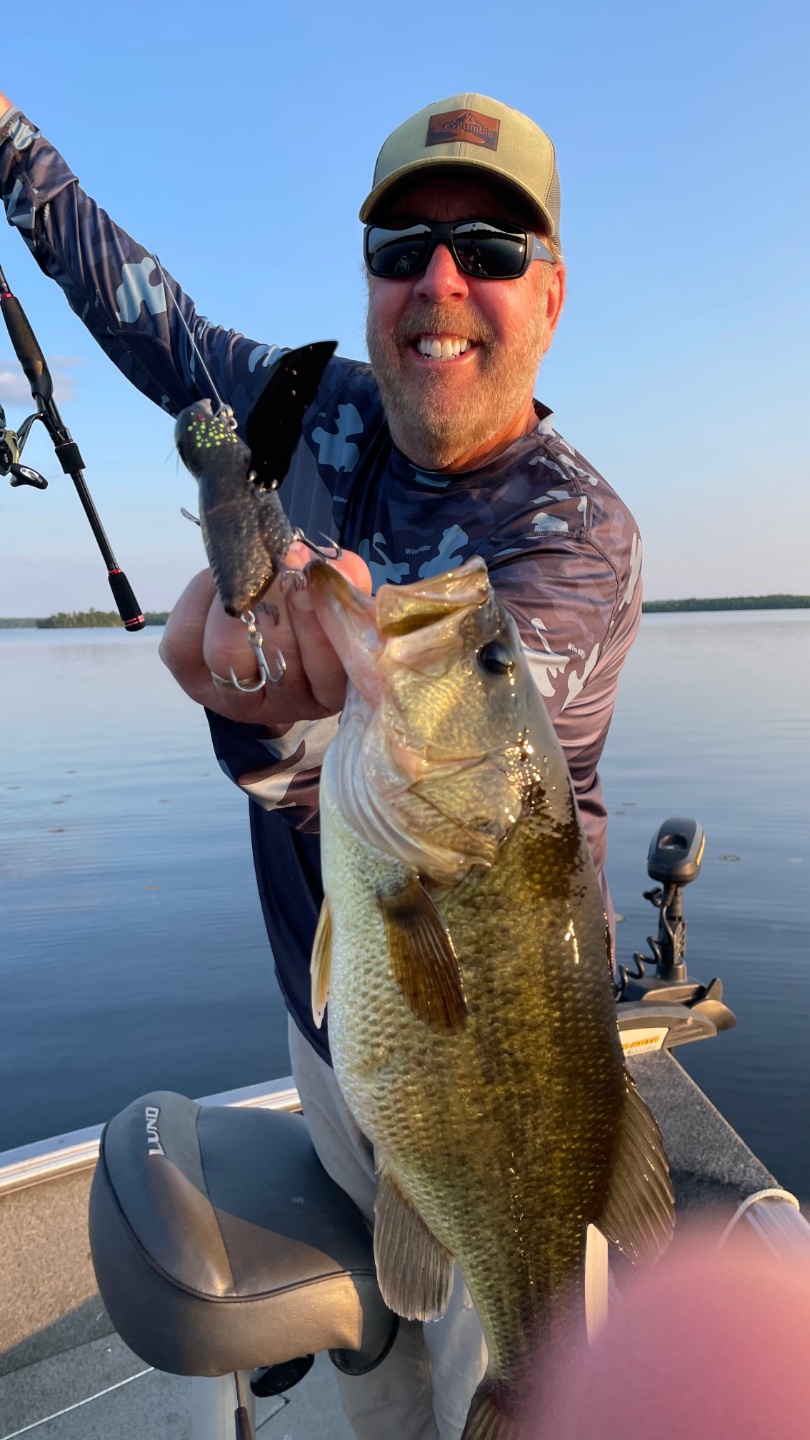 More fun on our trip to Pelican Lake, Minnesota. The evening topwater had kicked in. My buddies are getting them on the whopper ploppers while I’m getting them on the rat and the bird.