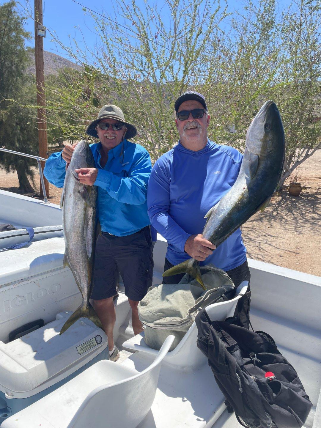 went with a group of 13 guys last week to bahia de la. one group of 6 people left sat, our group 0f 7 people left monday. we left at 6am got to bahia at 3:30. weet with other group at our hotel and got the scoop what was happening. needed 5 circle hooks and 80 lb leaders as the yellowtail were angry fish. We were picked up at 5am and taken to launch ramp. we then went in bay and made bait.First day only fished to 10:30 as cooler and kill bags were full. we fished north part of la guarde island in 150 os water. Caught grouper, pargo, white sea bass,sheephead, spotted bay bass, and yellowtail.Got my butt handed to me by yellowtail they were angry fish and you couldn't let them go down to rocks or you would lose them.Back at hotel at 11;30. next day same thing we fished to 11:30 because we lost some fish to sea lions. On third day went south and had similar success except it took 1:30 hours to get back to hotel. we found a new fish processor who cleaned the fish vacuum sealed them, and froze them for $2 pound, came back friday tired but cannot wait for trip again next year.