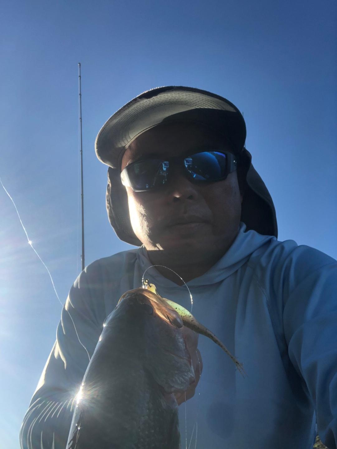 Got there @5:30, and you can feel the heat coming. Headed back to Hauser picking up one on popper, another on a crawler. Very slow until busters came up, five other boats around and we sat waited for them to bust around us. It was fun if you can land on top of them, jerk bait and flukes worked for me. These were healthy and bigger bass, 2-3lb. The bite shut down when the wind came up, left @11. Water 82 weather was 100!