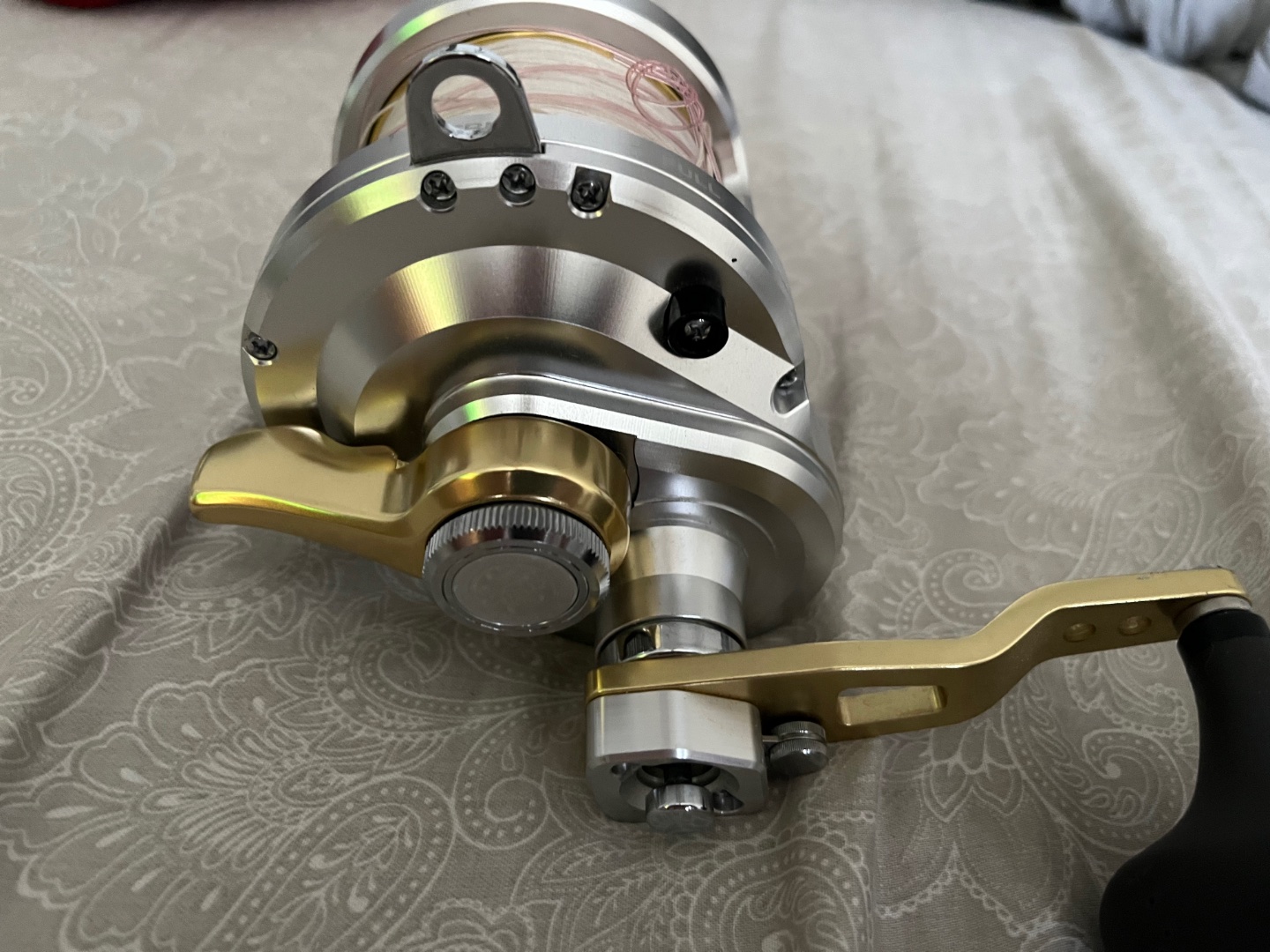 Shimano Talica 20 2 speed. I bought this new from Anglers Arsenal a couple years ago. It came with me on one trip and sat in the rack. Been sitting in the box since then. Won’t find anything used less than this. 10/10 Spooled to the top with 100lb braid. There’s a longer 60lb flouro top shot. Comes with a reel cover and the box/clamp, etc. $650
